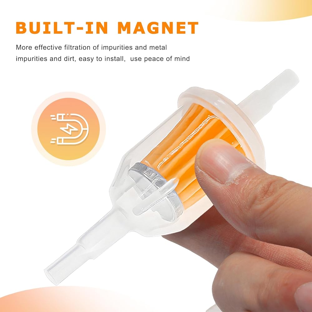 Thoughtful Design: This fuel filter has a built-in magnet that can capture metal impurities in the fuel, purifying the gasoline and protecting the engine. In addition, it features a transparent housing, which allows for quick assessment of the filter's working condition, making it more convenient to use