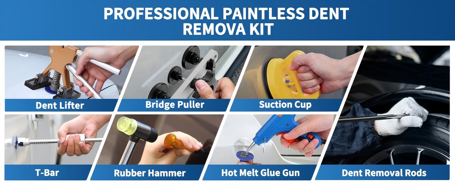 Attention!!! Specifically designed for automotive dent repair: This kit (including dent roads components) is exclusively engineered for non-destructive repair of automotive body dents (e.g., hail damage, door dents). Do not use for any other purpose, especially strictly prohibited for any illegal activities