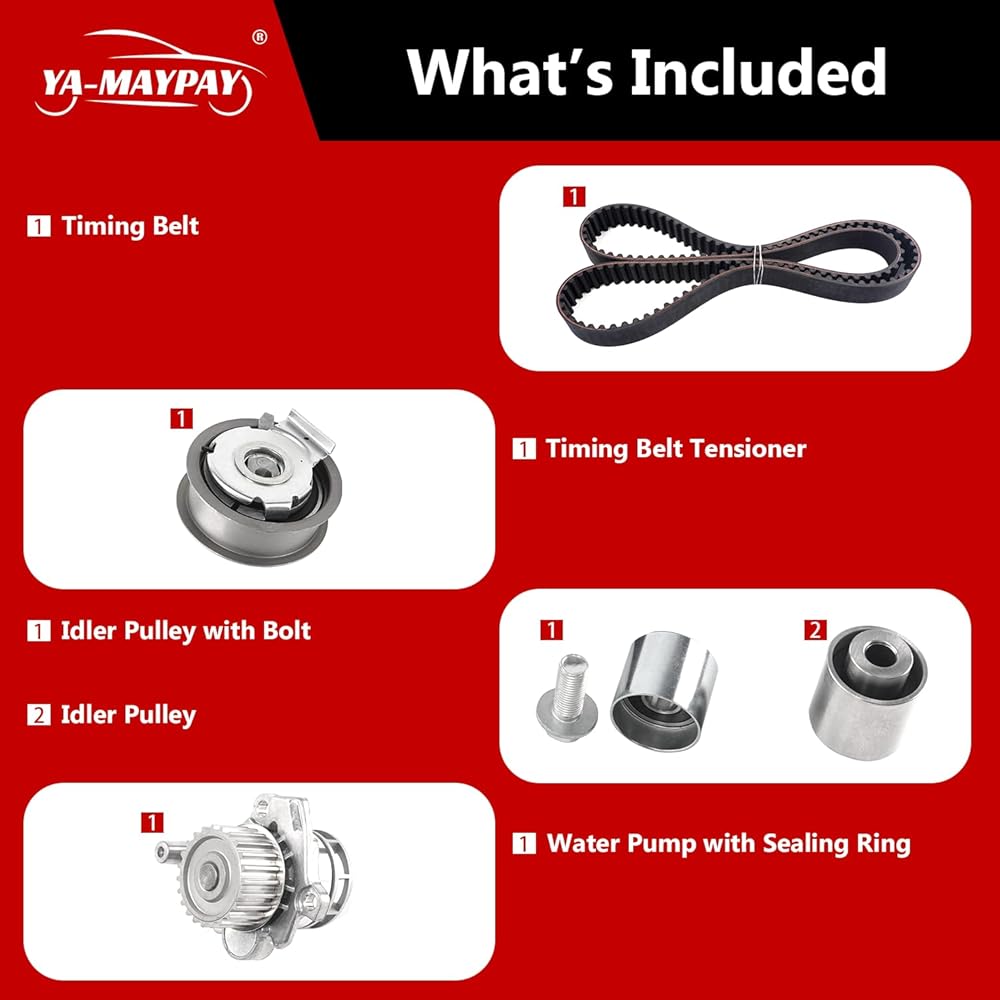 Engine Timing Belt Kit with Water Pump Fit Compatible with Audi A3 (BPY), Quattro (BPG,BWT), A6 (BPJ,BYK), TT (BPY,CDMA, CDLA,CDLB,CDMA).Compatible with VW EOS GTI Jetta Passat 2.0T