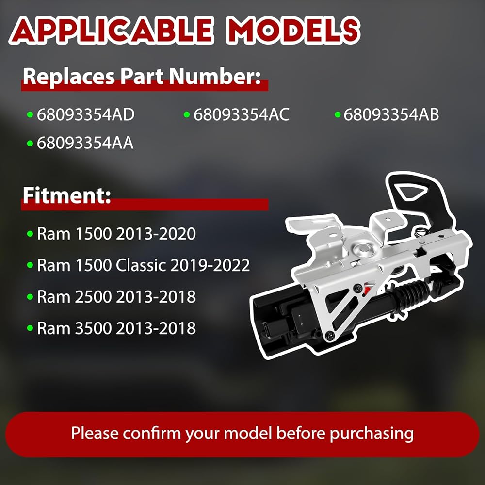 [Direct Fitment]: 68093354AD Tailgate Lock Latch Actuator Compatible with Ram 1500 2013-2020, Ram 1500 Classic 2019-2022, Ram 2500 2013-2018, Ram 3500 2013-2018. Please check the OE and model list carefully before order!