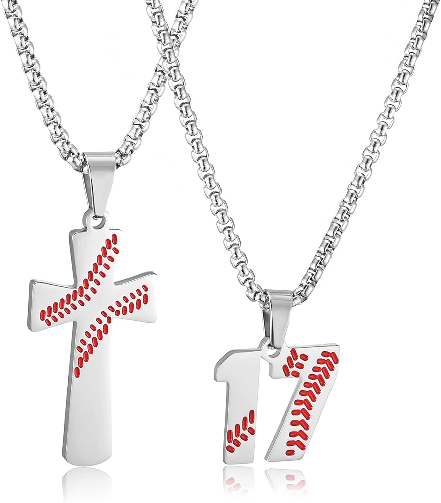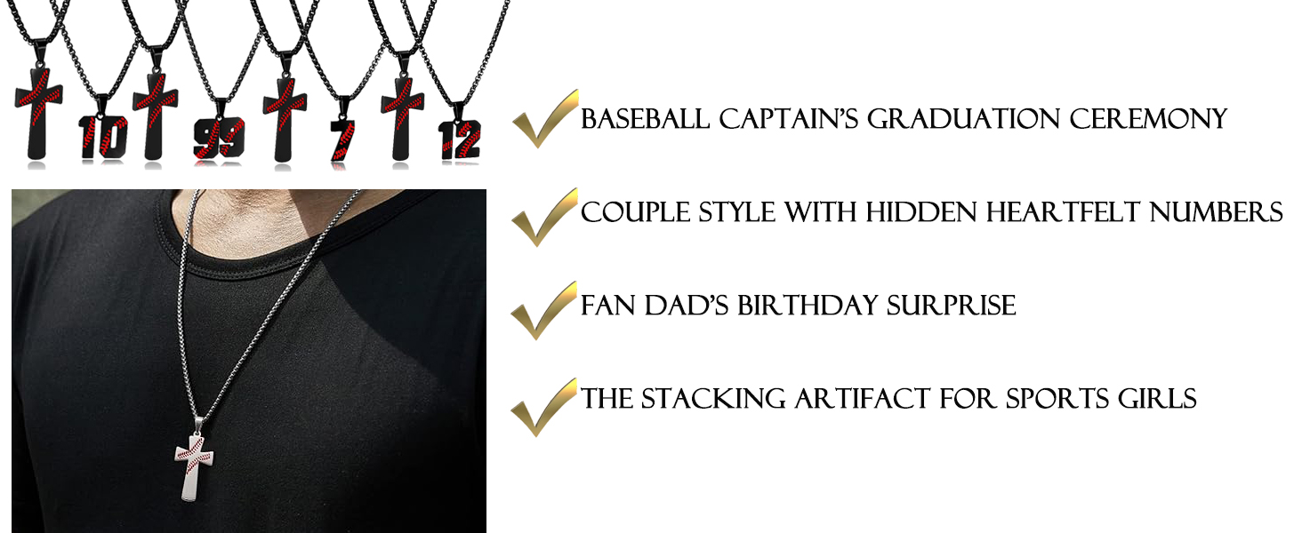 ⚾PERFECT COMBINATION-This baseball necklace set includes a baseball cross and a baseball number necklace.Choose your own favorite lucky number,Support your favorite baseball player.Bring luck to you and him/her.