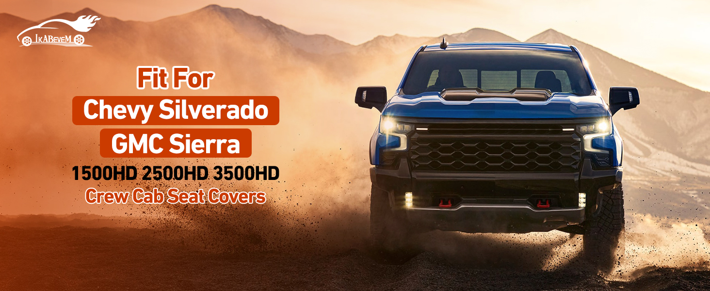 【Well Fit】IKABEVEM seat covers front seats are customized designed to fit for Chevy Silverado GMC Sierra Pickup truck 2007 2008 2009 2010 2011 2012 2013 2014 2015 2016 2017 2018 2019 2020 2021 2022 2023 2024 2025 2026 Chevrolet Silverado 1500 2500HD 3500HD Trail Boss Z71 crew double cab and extended cab, which a perfect fit and maximum comfort.