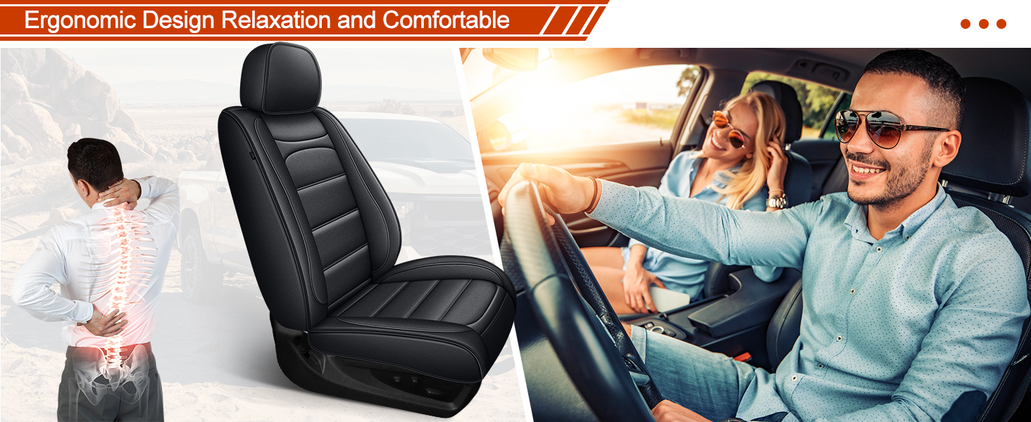【Full Wrap Design for Front Seats】The front seat covers feature a 360° full wrap design, enhanced by a durable 4-zipper system. The back of the front truck seat covers includes three large pockets for storing books, tissues, toys for kids and pets, and more.