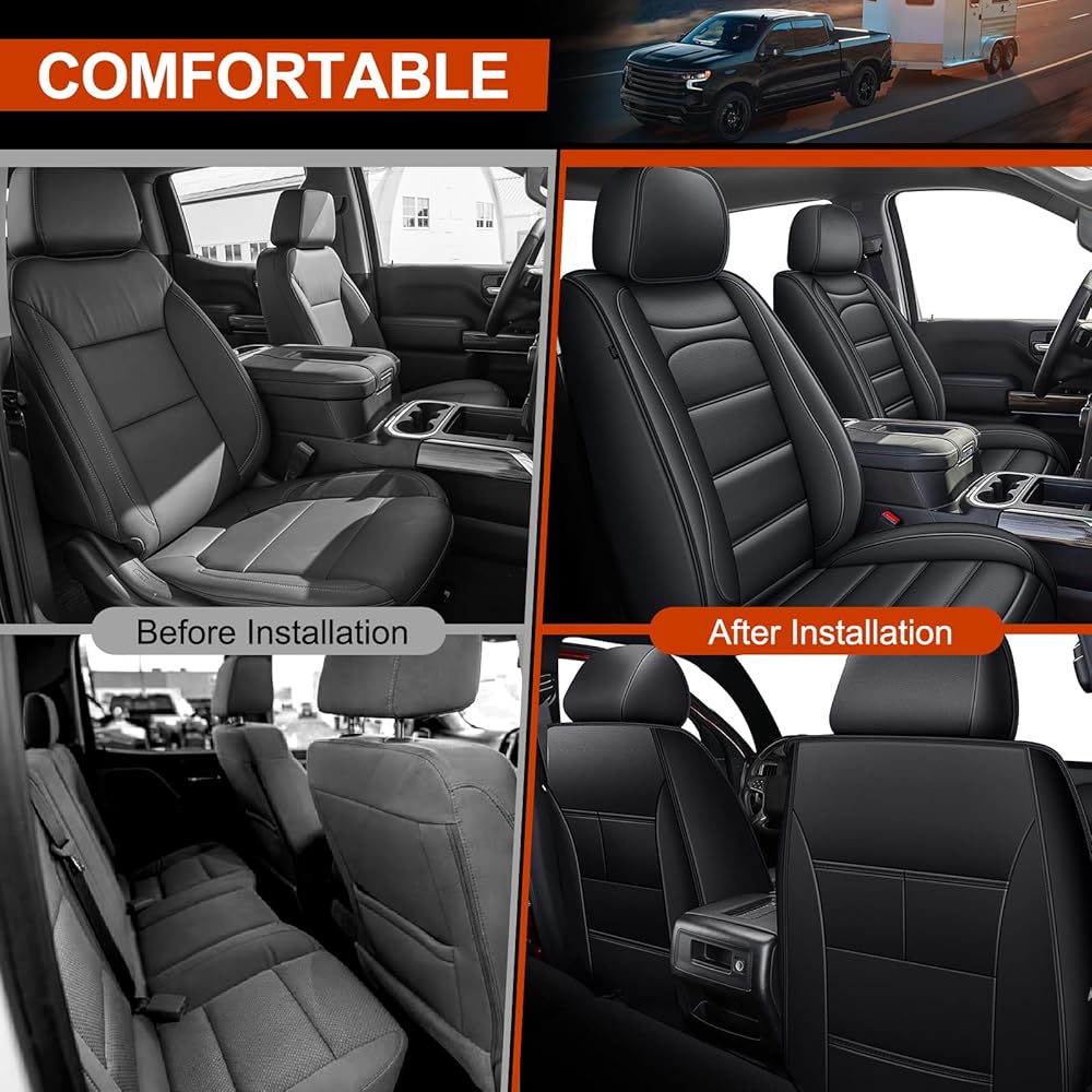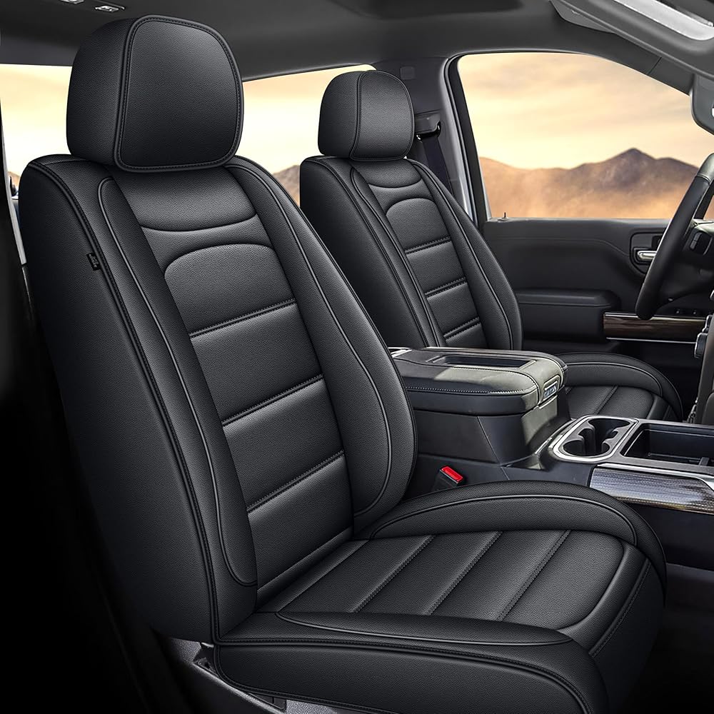 Seat Covers Fit for Silverado: 2007-2026 Chevy Chevrolet Silverado GMC Sierra 1500 2500HD 3500HD Trail Boss Z71 Crew Double Extended Cab Truck Pickup Front Car Seat Covers (Blackline, Front Pair)
