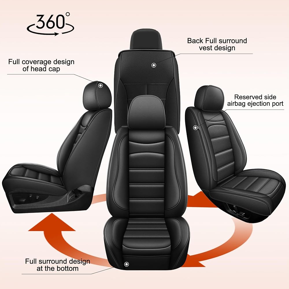 【Function Retention】These full-coverage seat covers are custom-tailored to match the original seat dimensions, ensuring that all functionalities such as airbags, seat belts, and seat adjustments remain fully operational. The side of front seat covers use single-stitching to ensure that airbags can deploy correctly. Note: The airbag label is located on the side near the car door.