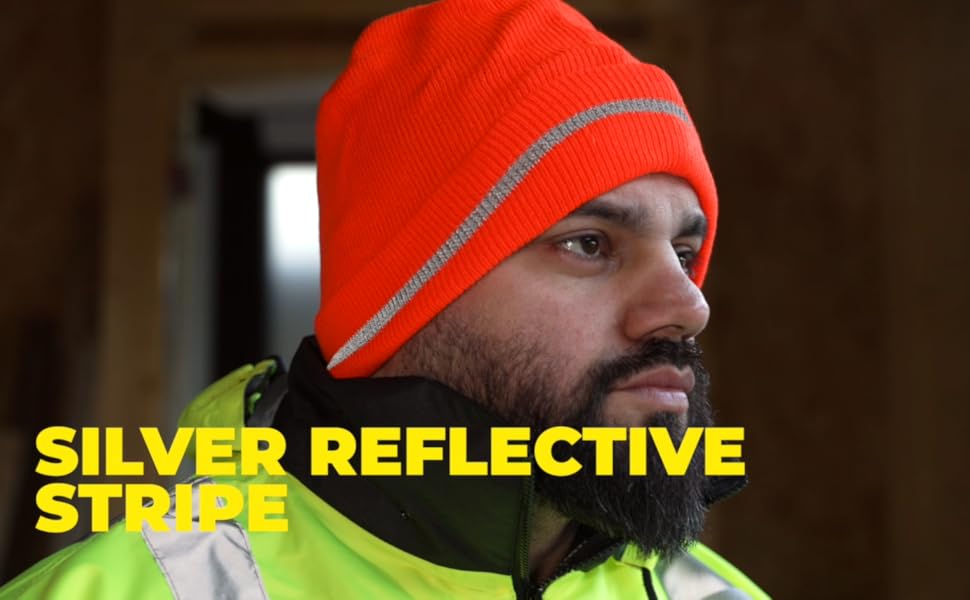 OccuNomix Mens Reflective Beanie Skull-caps, Yellow, Knitted Cap US