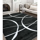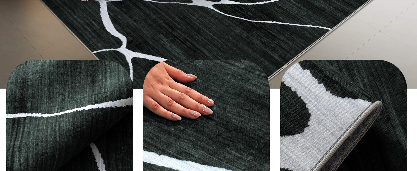 [قابلة للغسل في الغسالة]: هذه السجادة العصرية باللونين الأبيض والأسود يمكن غسلها في الغسالة، مما يسمح بالتنظيف اليومي السهل باستخدام مكنسة كهربائية.