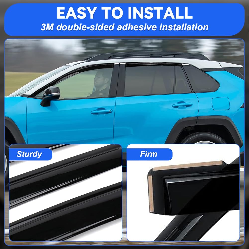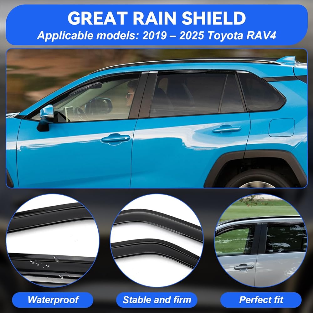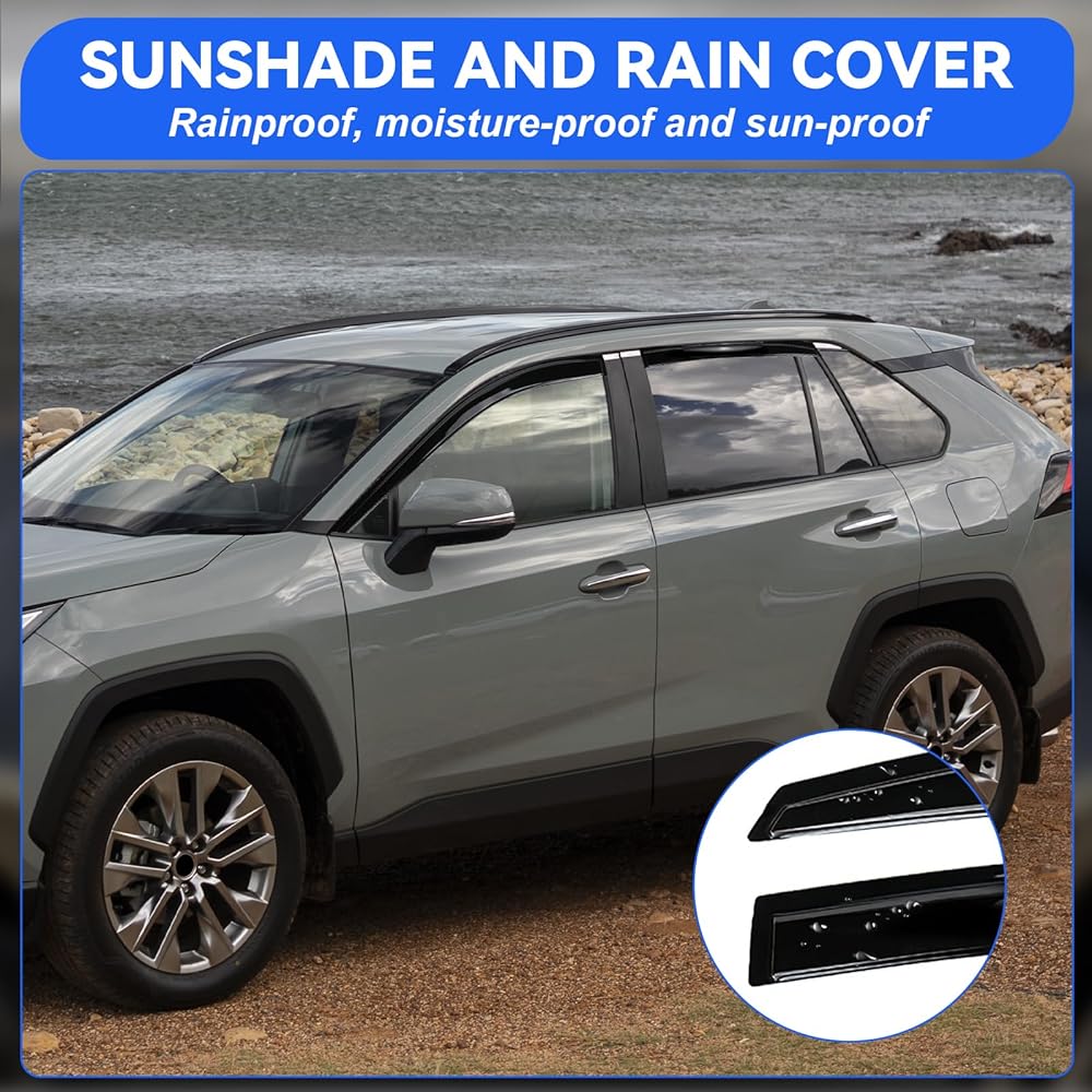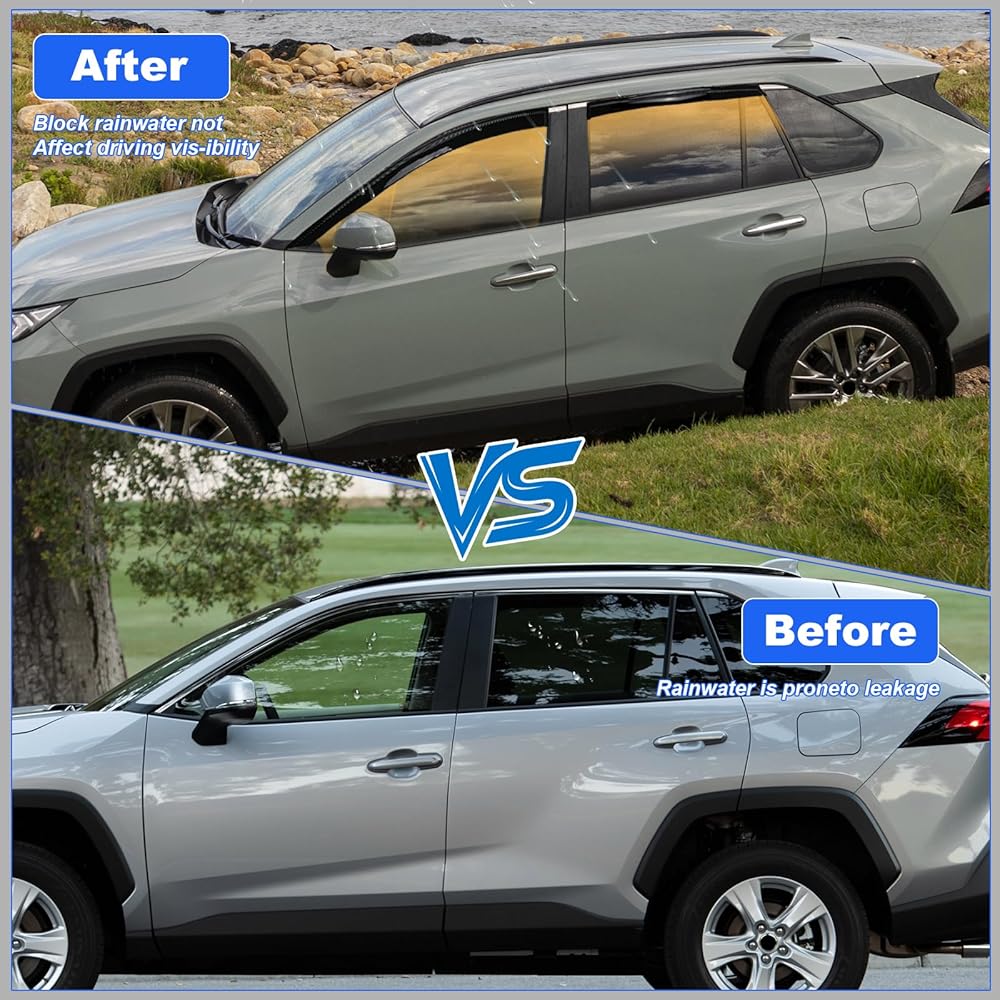【Perfect Fit for 2019-2025 Toyota Rav4】These 2019-2025 Rav4 window visors are tailored to fit your vehicle like a glove, guaranteeing a flawless integration and a sophisticated appearance.