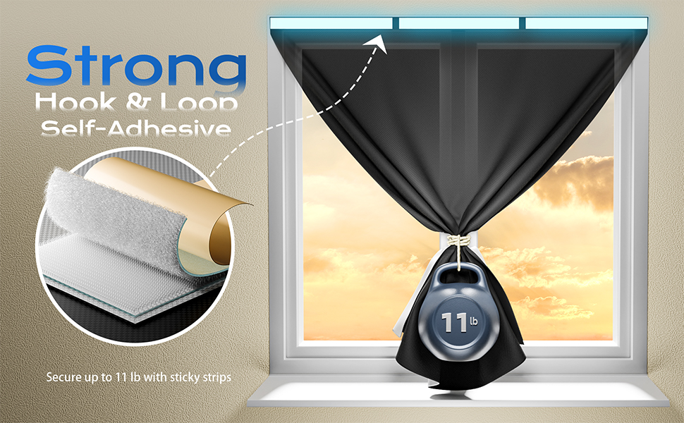 【No Drill Design】:No tools, no holes, no limits. Velcro blackout curtains gives you no-drill freedom for any wall, any window, anywhere. The acrylic adhesive provides strong grip on glass, wood, and plastic surfaces, leaving no residue when removed