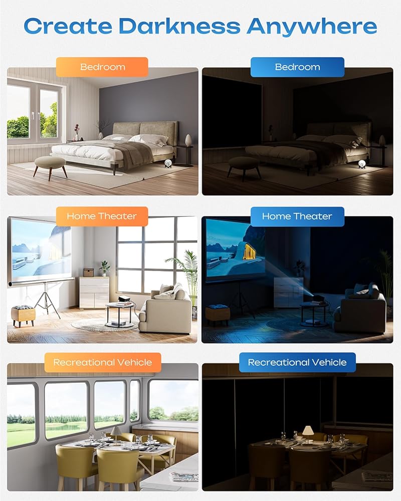 【Versatile Customization】:Our black out window cover come in 8 standard sizes and can be easily trimmed to fit unique window shapes,including RV skylights, arched windows, and polygonal designs. For optimal shading performance, we recommend selecting a size slightly larger than your window's actual measurements
