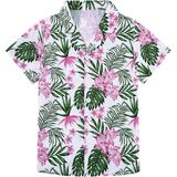 Eye-Catching Design: The button dwon shirt boy features with a tropical floral printed design, short sleeve, button down closure, regualar fit, camp colla, straight hem. Hawaiian shirts showcase a range of vibrant designs from traditional Hawaiian florals to modern patterns, adding unique style to your wardrobe