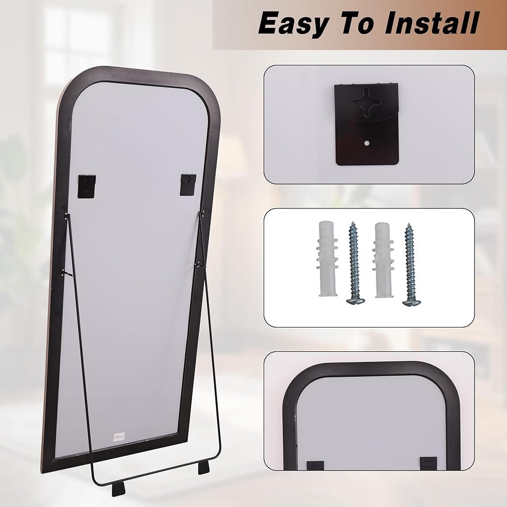 Versatile Placement & Effortless Installation: This standing mirror offers flexible installation options: mount it on the wall, use the included stand to display it as a floor mirror, or lean it casually against a wall for a relaxed, lived-in look. Whether you're styling a spacious living room, a cozy bedroom, or a compact entryway, select the ideal size and frame color to match your space and style, turning it into a dazzling, functional dressing mirror that elevates any interior