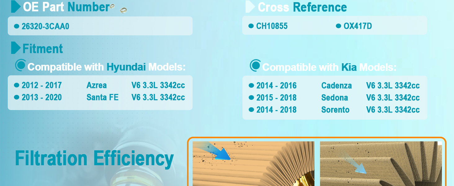 [Important]: This is NOT an original part. It's a replacement part made by FOCUSFILTER. Model J06122BX-G1 crosses to 26320-3CAA0