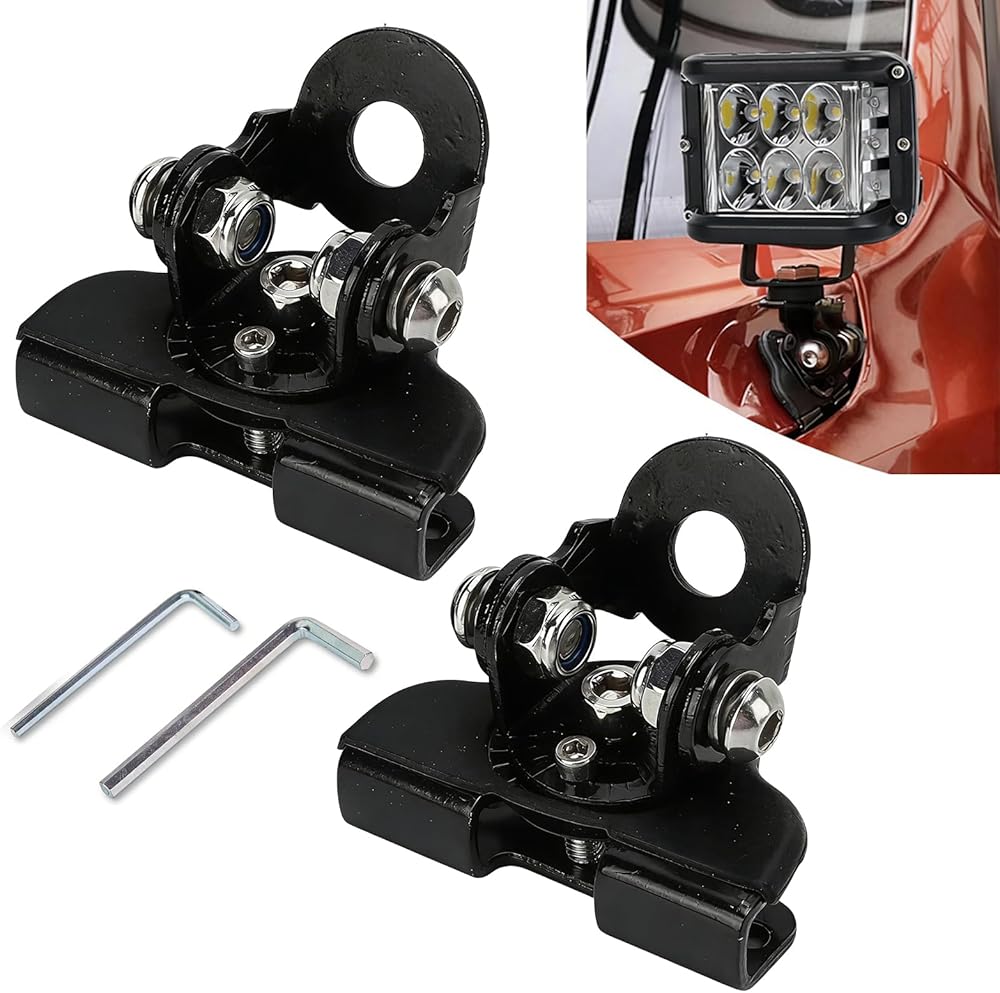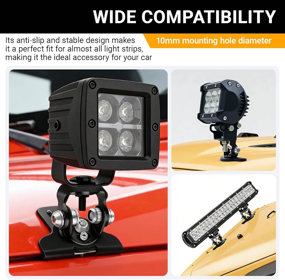 Upgrade your off-road lighting with KoiLuvGo's Adjustable LED Light Brackets. This 2-piece set features a durable, rust-proof stainless steel construction with a protective rubber shield to prevent scratches on your vehicle's paint. The brackets offer 180-degree vertical and 60-degree horizontal adjustment for precise light positioning. Designed for easy, no-drill installation on hoods and other flat surfaces. Perfect for trucks and SUVs, these versatile mounts provide a secure and stable base for improved visibility during off-road adventures and work projects.