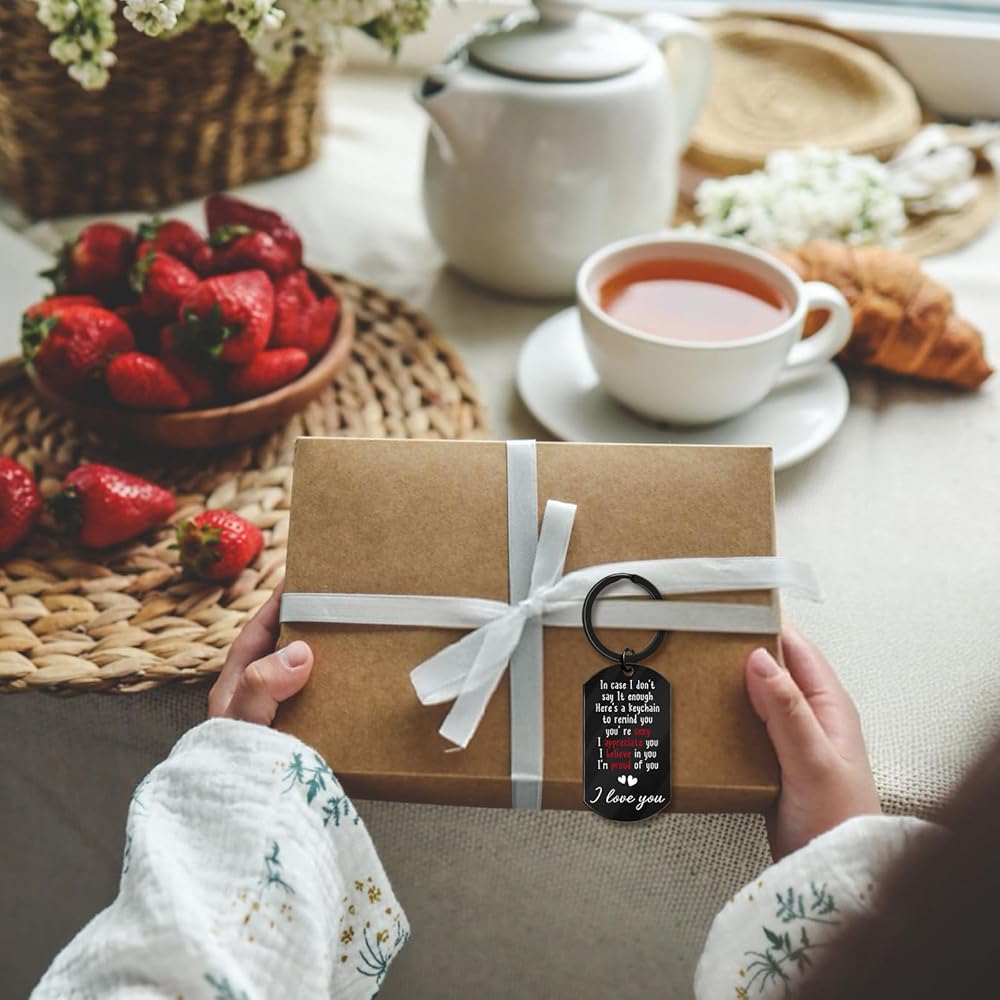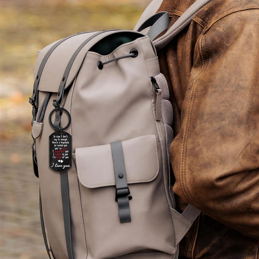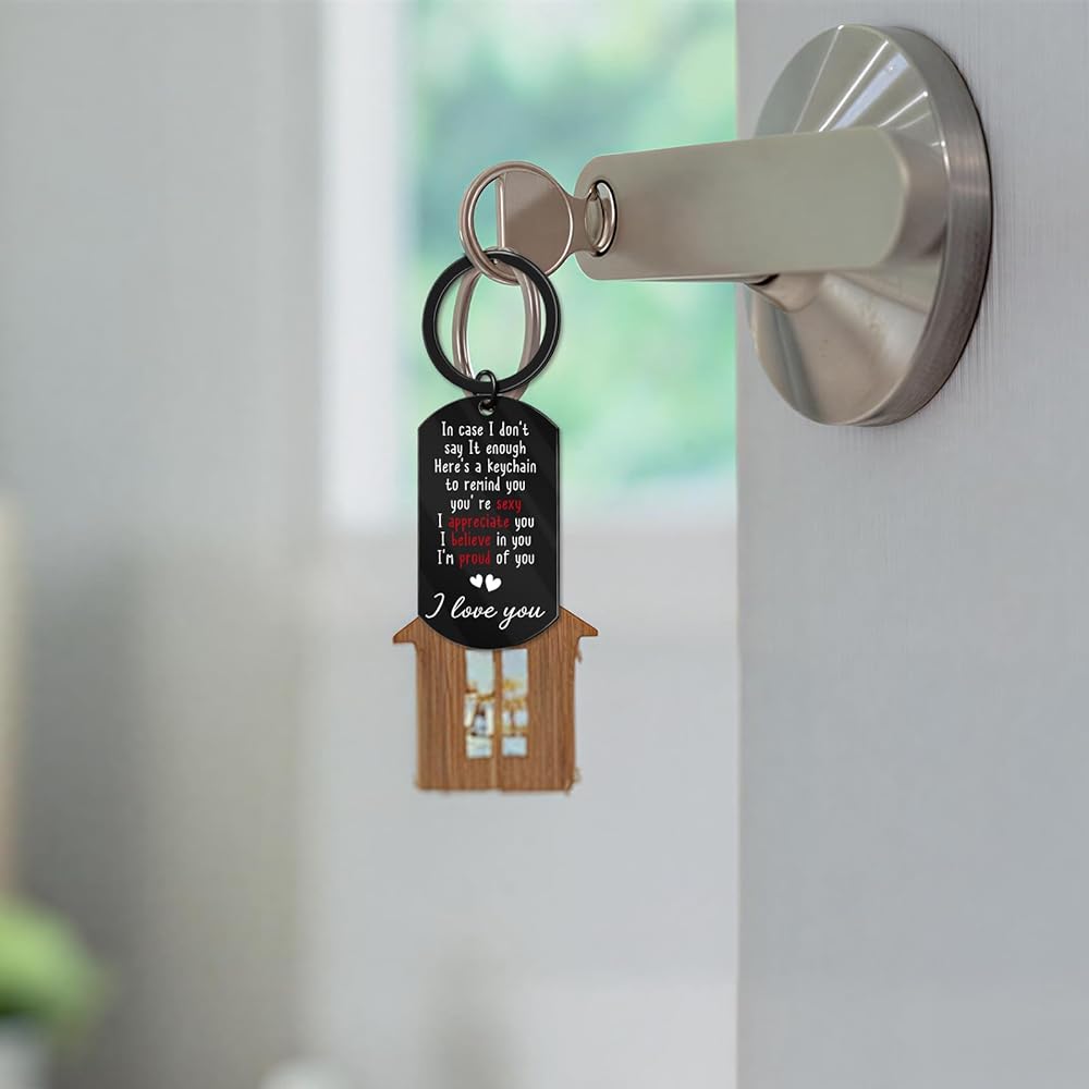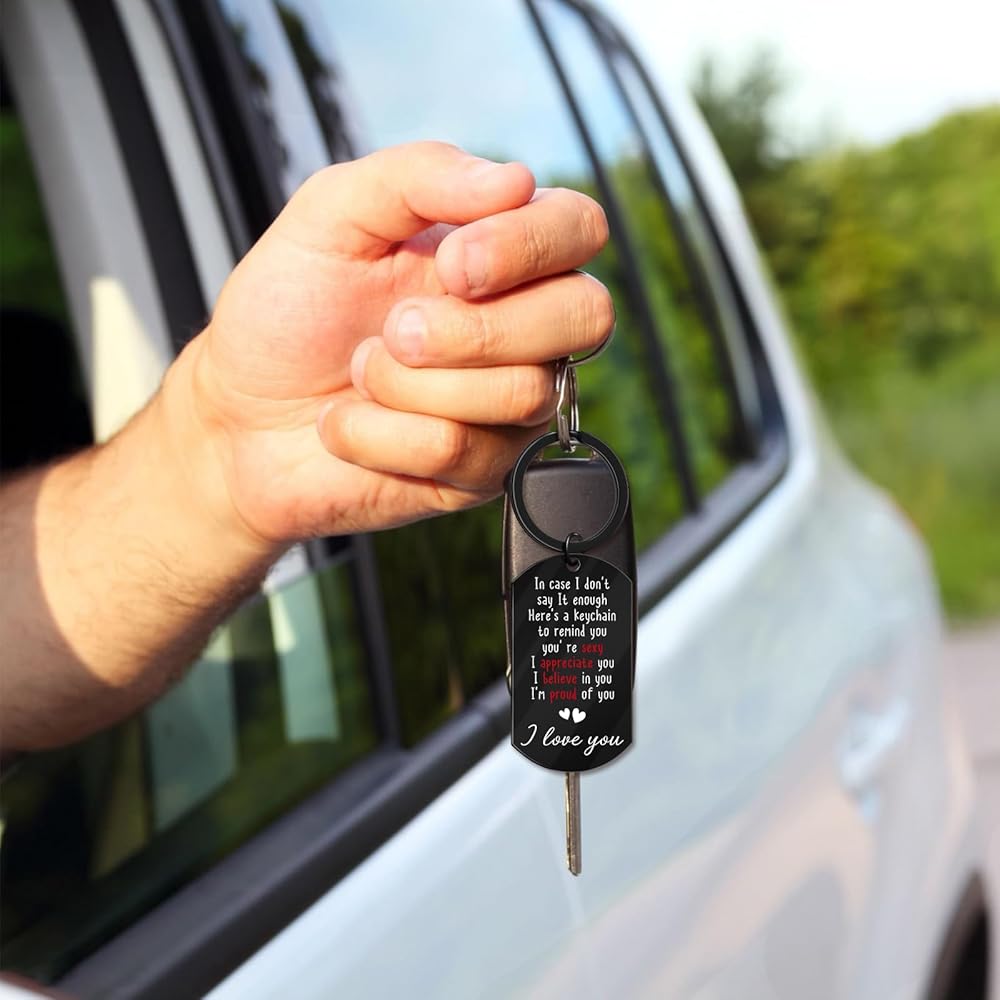 Size: 1.97x1.1inch. This keychain is durable, hypoallergenic, and resistant to rust, corrosion, or tarnishing. The laser-etched text is clear, permanent, and will not fade or scratch off easily. Ideal for Valentine's Day, Anniversaries, Father's Day, Christmas Day, birthday gifts for him, I love you gifts for him, sexy gifts for him, gag gifts for men, romantic gifts for him, or simply as a surprise. Whether he is a new driver, a truck drivers, or a partner deployed away from home, this gift bridges the distance between you.