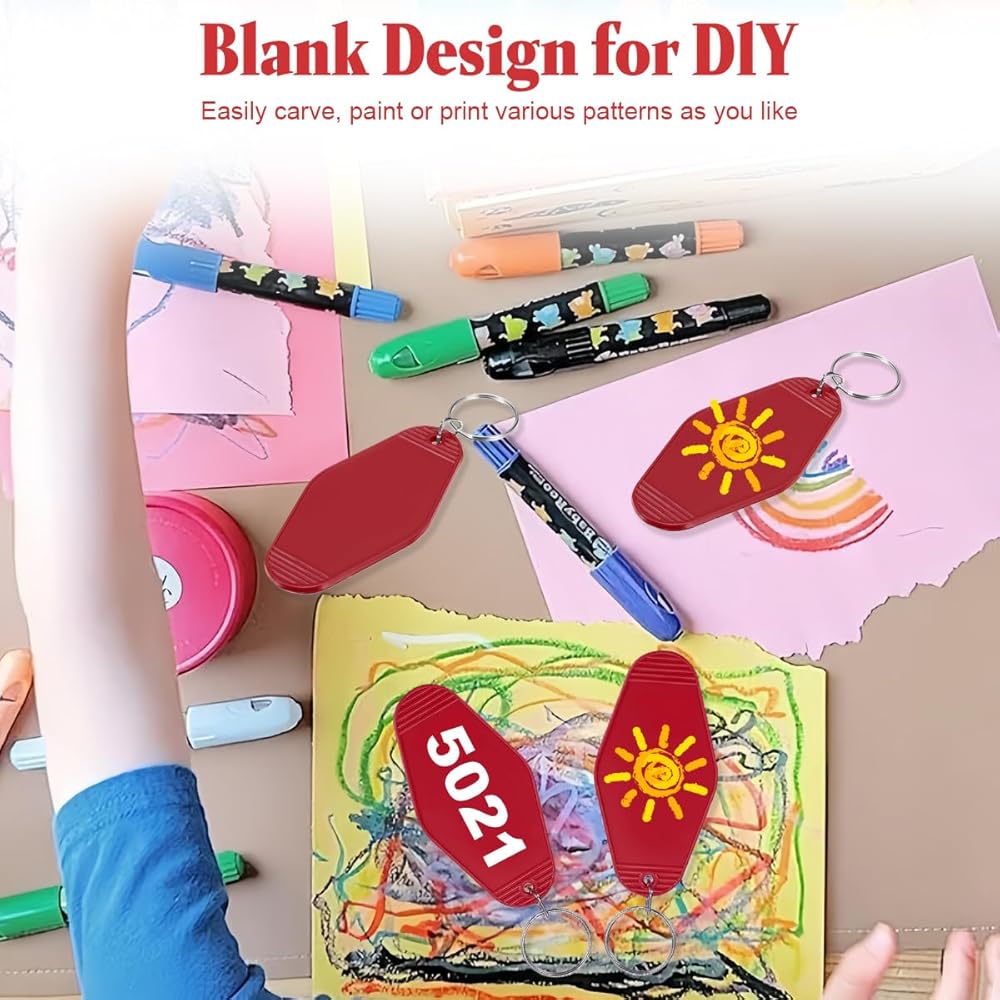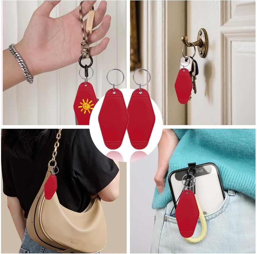 Design: Features a classic rhombus shape with double-sided blank surfaces. The vintage motel style gives it a unique look, and the included metal ring makes it easy to attach to keys or bags