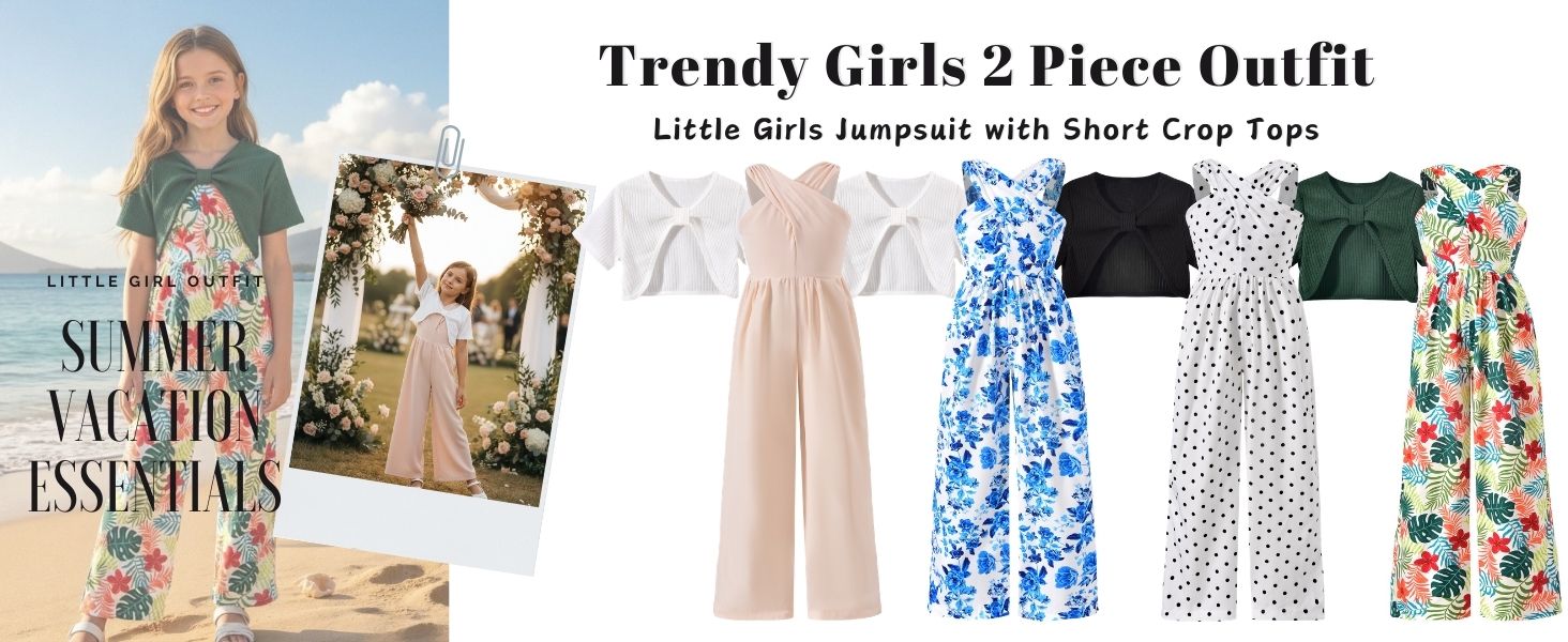 Package Includes: 1 pcs short sleeve crop tops and 1 pcs halter cross romper, which is a special gift for your little girl to wear to enjoy the summer vacation.