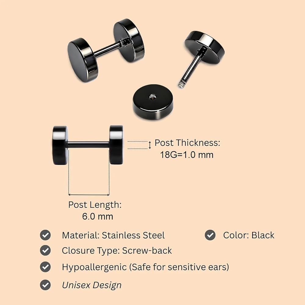 7 x Pairs Stud Earrings/Fake Plugs From size 4mm,5mm,6mm,8mm,10mm,12mm,14mm