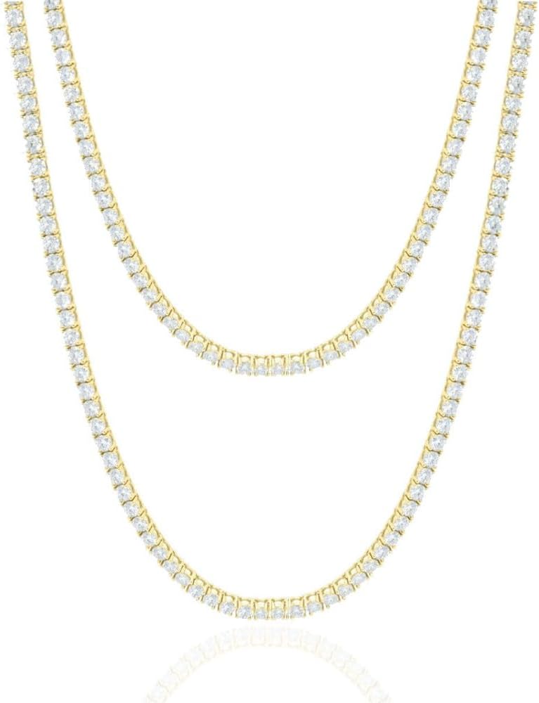 Genuine Authentic Italian Sterling Silver VVS1/D 6.55 Ctw. Lab Created Diamond 14K Real Yellow Gold Bonded (3X layer Thick Micron Plating) 3mm One Row Tennis Link Chain Neckless Unisex in Kuwait