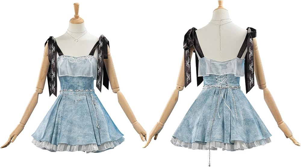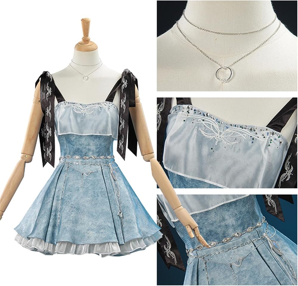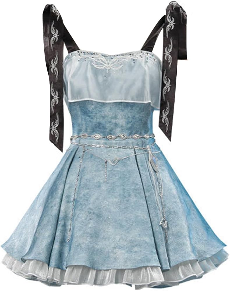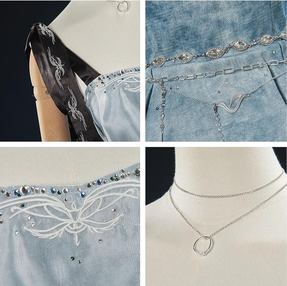 Inlcuding:Women Cosplay Costumes Tie-Strap Dress Full Set:Dress,waist chain, waist drawstring, shoulder strap, necklace,as shown,maybe the color displayed may slightly vary due to different monitor settings.
