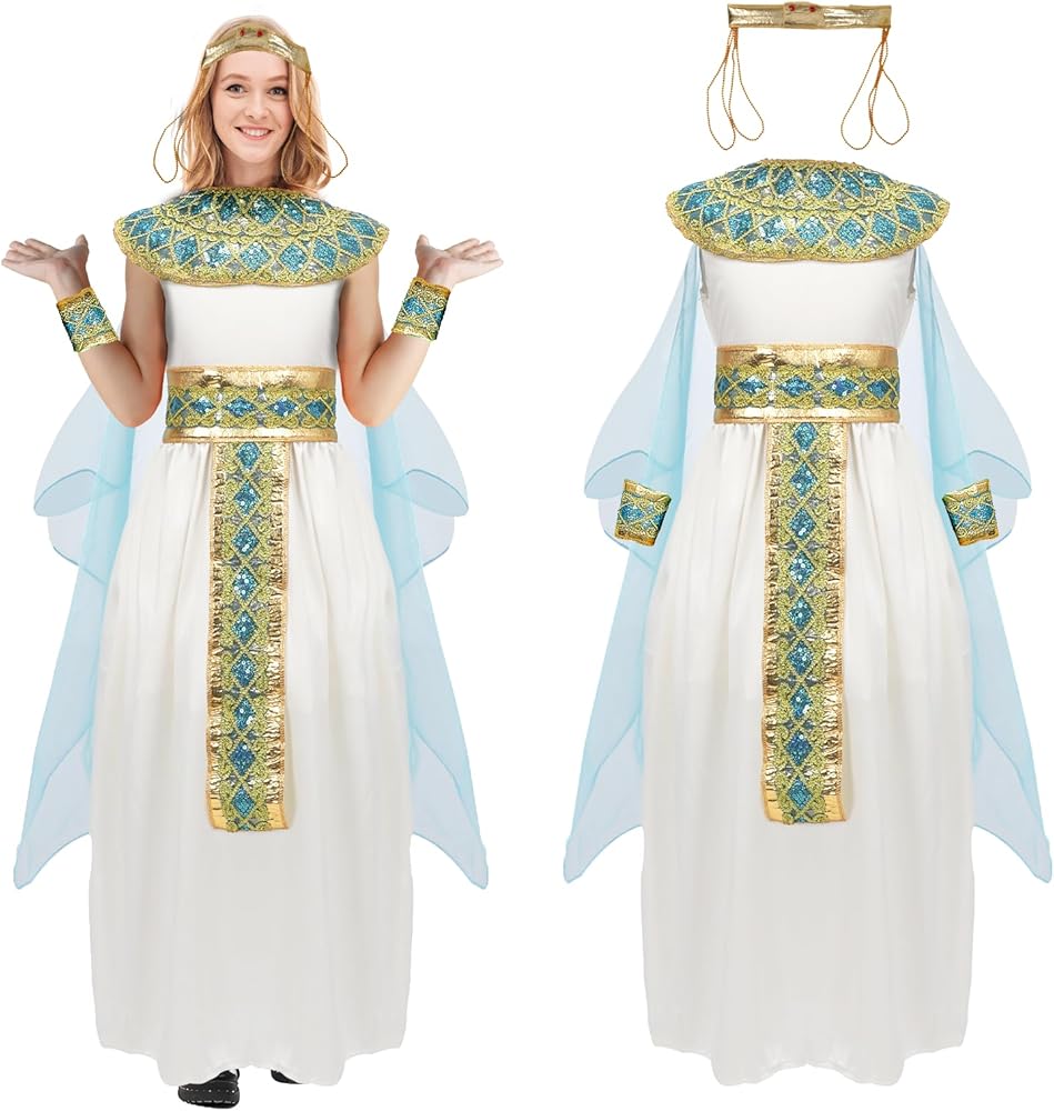 Xinxiaomeng 6Pcs Cleopatra Costume Women Egyptian Princess Costume Cleopatra Accessories Halloween Outfit Props