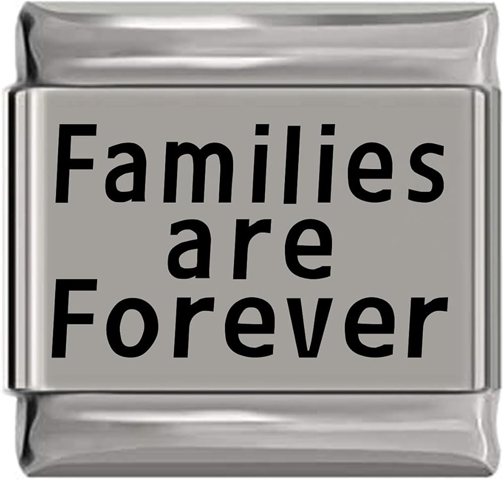 Families are Forever Laser Engraved Italian Charm (9mm Standard Size). This hiqh quality Italian Charm is compatible with our entire Italian Charm line as well as with all other major brands. Start with a few unique designs and build up to a full bracelet of unique charms over time. These charms and the bracelets they create make great gifts for a birthday, graduation, Mother's Day, and more.