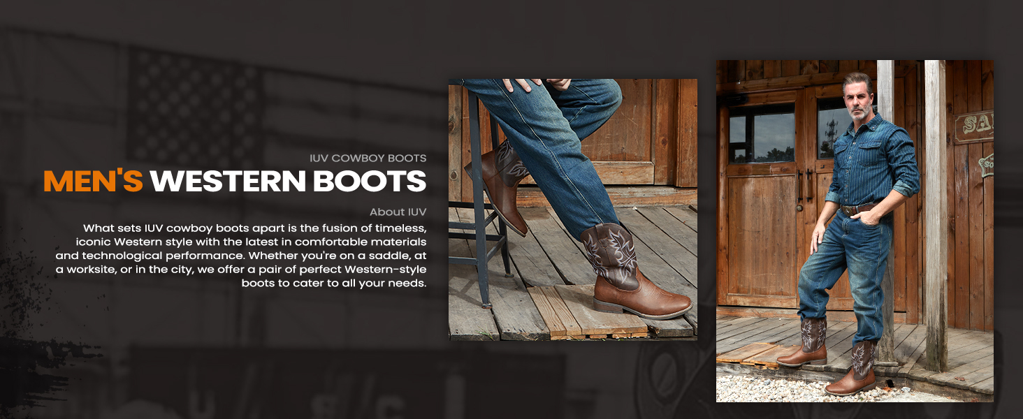 [All-Day Comfort with Square Toe]:Experience lasting comfort in these men's cowboy boots. The roomy square toe design allows your feet to relax, while the built-in arch support cushion helps combat fatigue, making these western boots ideal for all-day wear.