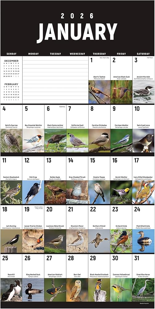 Daily Dose of Joy: Bring the beauty of nature inside with this striking calendar and its colorful illustrations and seasonally appropriate info for any ornithology novice or expert. Each is identified beside its picture—the perfect gift for bird lovers!