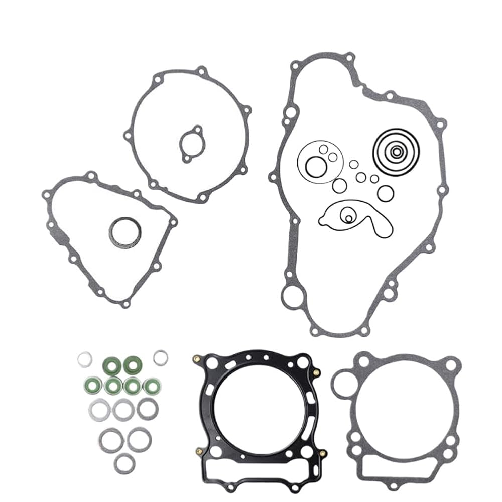 Motorcycle Engine Cylinder Cover Gasket Kit compatible with YZ450F 2003-2005, WR450F 2003-2006, YFZ450R, YFZ 450 R 2004-2005.This gasket kit is designed to provide a secure seal for the engine cylinder cover.It includes all necessary gaskets and seals for installation.The components are made to match specifications for proper fit and function.