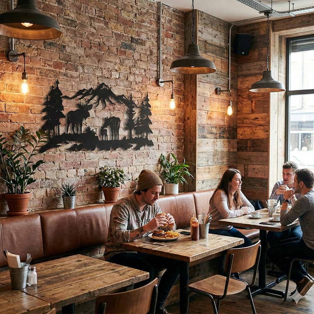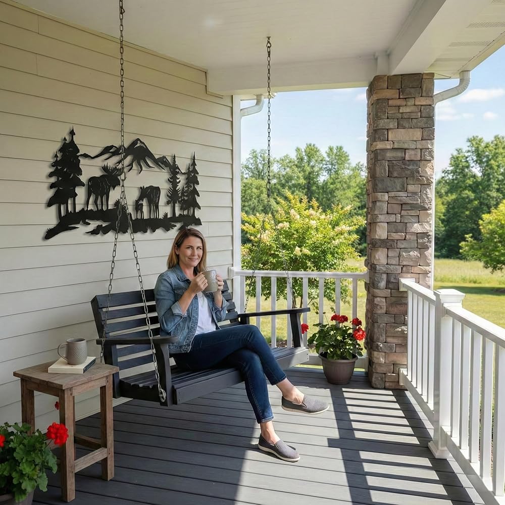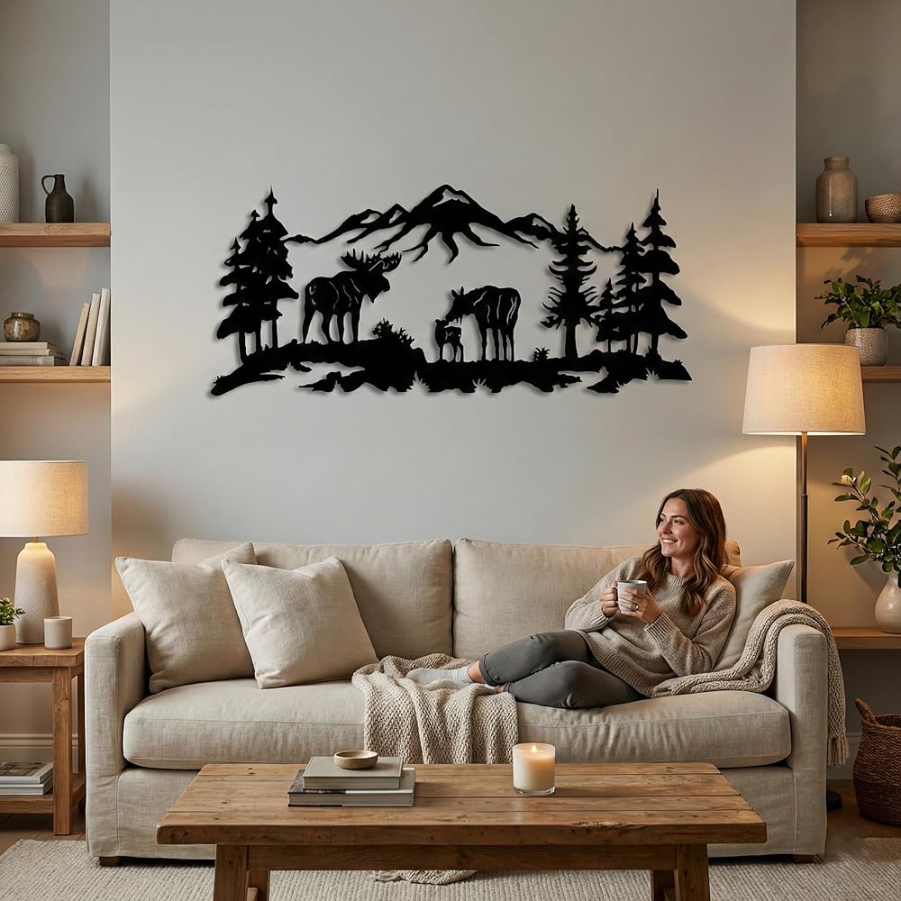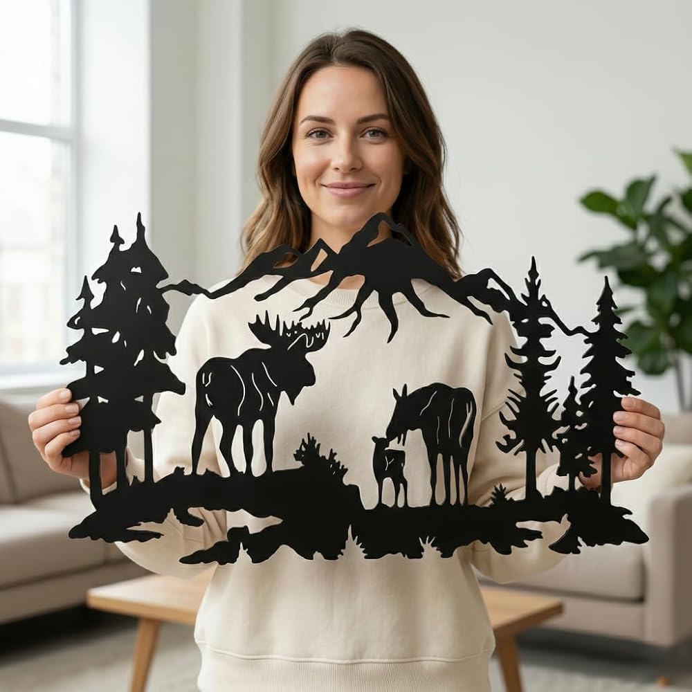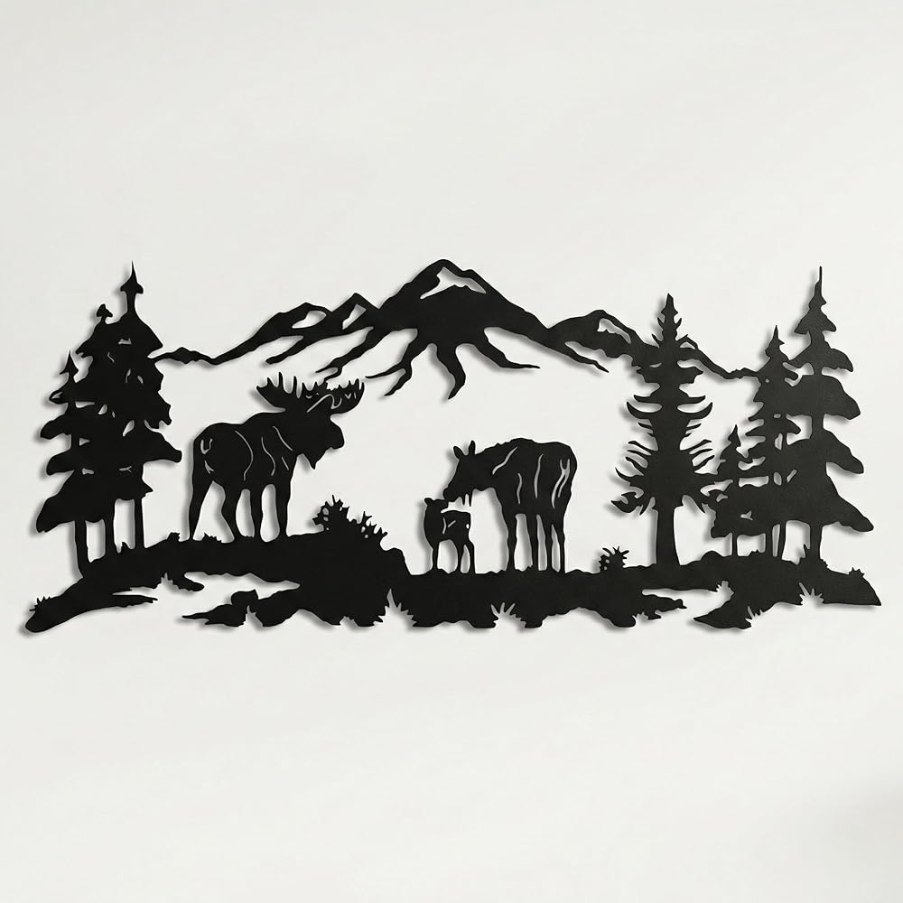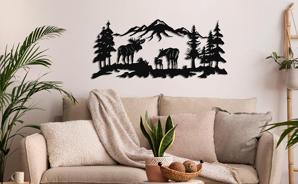 Metal Wall Art, Moose Art, Nature Wall Art, Tree Decor, Home Living Room Wall Decoration (24"W x 10"H / 60x26 cm)