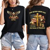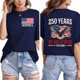 Celebrate a historic milestone with this USA 250th Anniversary patriotic shirt designed to honor 250 years of American freedom and independence. Inspired by the founding of the United States in 1776, this Freedom 250th Anniversary apparel features bold patriotic graphics that proudly represent American pride and heritage. The design highlights powerful Freedom lettering on the front and a detailed American eagle emblem on the back, symbolizing strength, liberty, and national unity. Available as a T-shirt, sweatshirt, or hoodie, this patriotic apparel offers comfortable everyday wear while commemorating America's Semiquincentennial celebration. Crafted with soft breathable fabric and a classic unisex fit, it is ideal for Independence Day celebrations, 4th of July events, fireworks shows, patriotic parades, and national gatherings. Whether worn to celebrate American history or to show your USA pride, this 250 years of freedom shirt makes a meaningful patriotic gift for veterans, patriots, family members, and anyone proud to celebrate America's historic 250th anniversary.