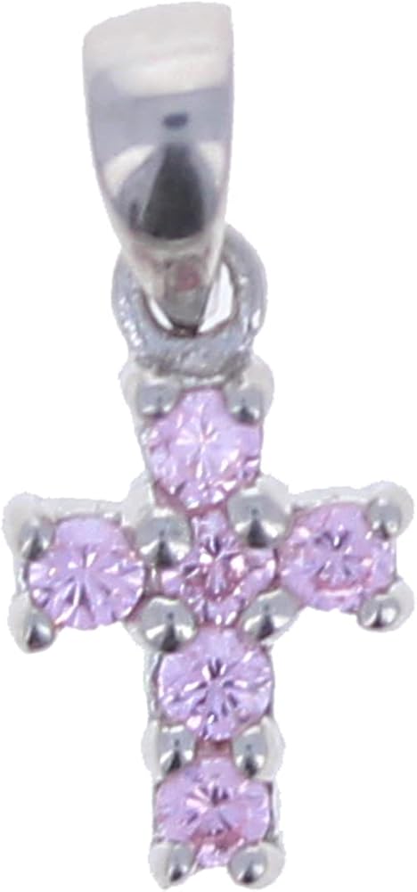 Genuine .925 Sterling Silver with White or Pink Cubic Zirconias. Charm is a great gift for First Communion, Graduation, or that special someone.