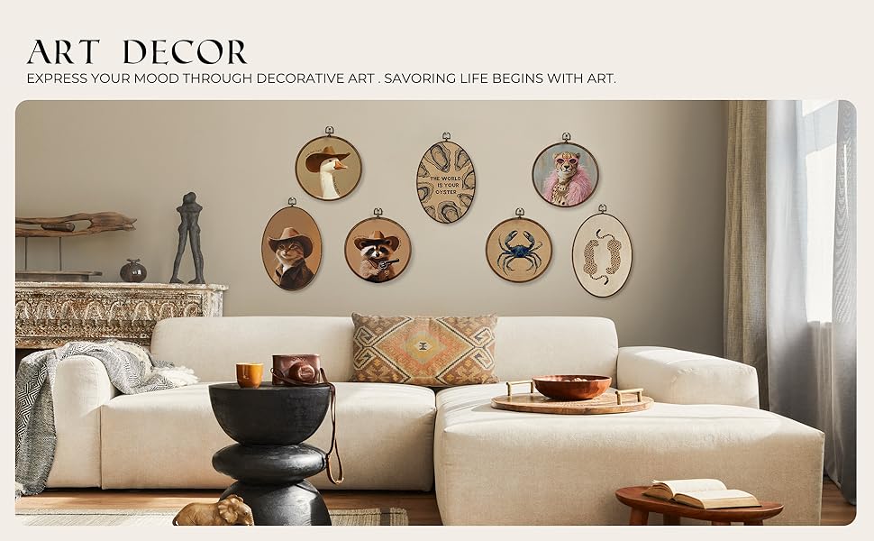 VERSATILE & TRENDY HOME DECOR:Featuring a unique design that blends trendy elements and seasonal styles, this oval wall art incorporates boho, mid-century modern, western, farmhouse, minimalist, and vintage aesthetics. Suitable for living rooms, bedrooms, bathrooms, kitchens, offices, dorms, entryways, nurseries, and playrooms, it adds a touch of charm and personality to any space.