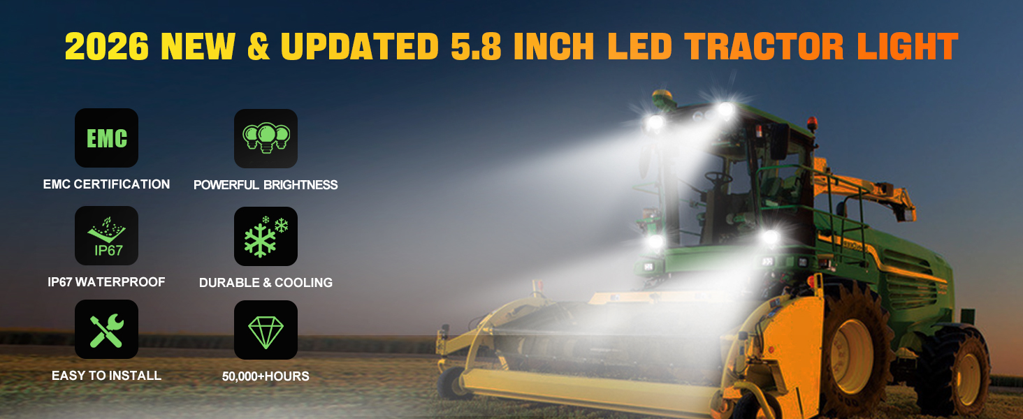 【EMC Compliance and Waterproof】: Approved of this EMC certification and IP67 waterproof rating,the Tractor Work Light has a strong anti-interference and waterproof function, can ensuring smooth operation without electronic interference and superior protection against harsh weather, including heavy rain.
