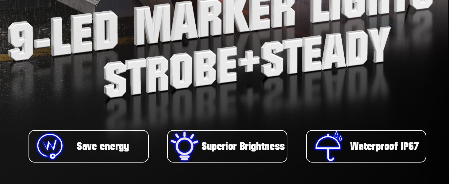 (Dual Function Trailer Marker Lights): One light has two lighting functions, which integrates marker light and flash strobe light;Perfect for use as trailer marker lights, auxiliary lights, clearance lights, identification lights, tail lights, signal lights, position lights, rear indicator lights, pedal lights, bumper lights, grille lights, rock lights, underglow, wheel well lights, or chassis lights, etc