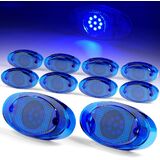 10-Pack Oval Red LED Marker Lights, 9-LED Dual Function (Steady & Strobe), 12V Waterproof - Side Marker, Clearance, Turn Signal Lights for Truck, Trailer, RV, ATV