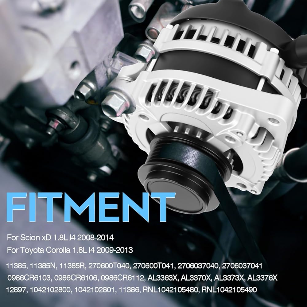 270600T040 Alternator for Scion xD 1.8L l4 2008-2014,for Toyota Corolla 1.8L l4 2009 2010 2011 2012 2013 High Output 100Amp Alternator 11385 11385N 11385R 270600T041 2706037040 2706037041 0986CR6103