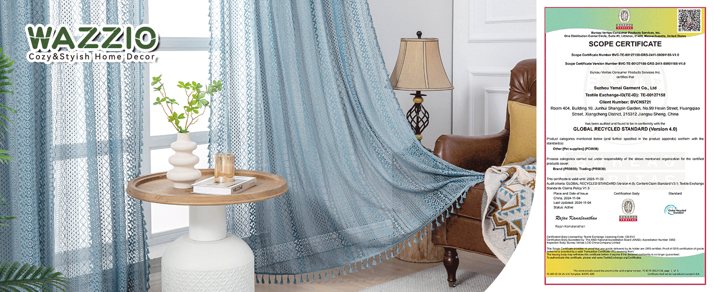 stone blue curtains 2 Panels :Sold in 2 panels.This boho sheer curtains 84 inches long which with 1.15 inches tassel design,so total length is 85.15 inches.The top of per window curtains panel with 3.15 inches pocket that can fit most rod easily