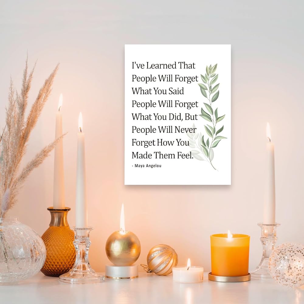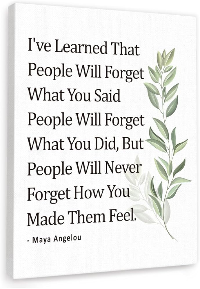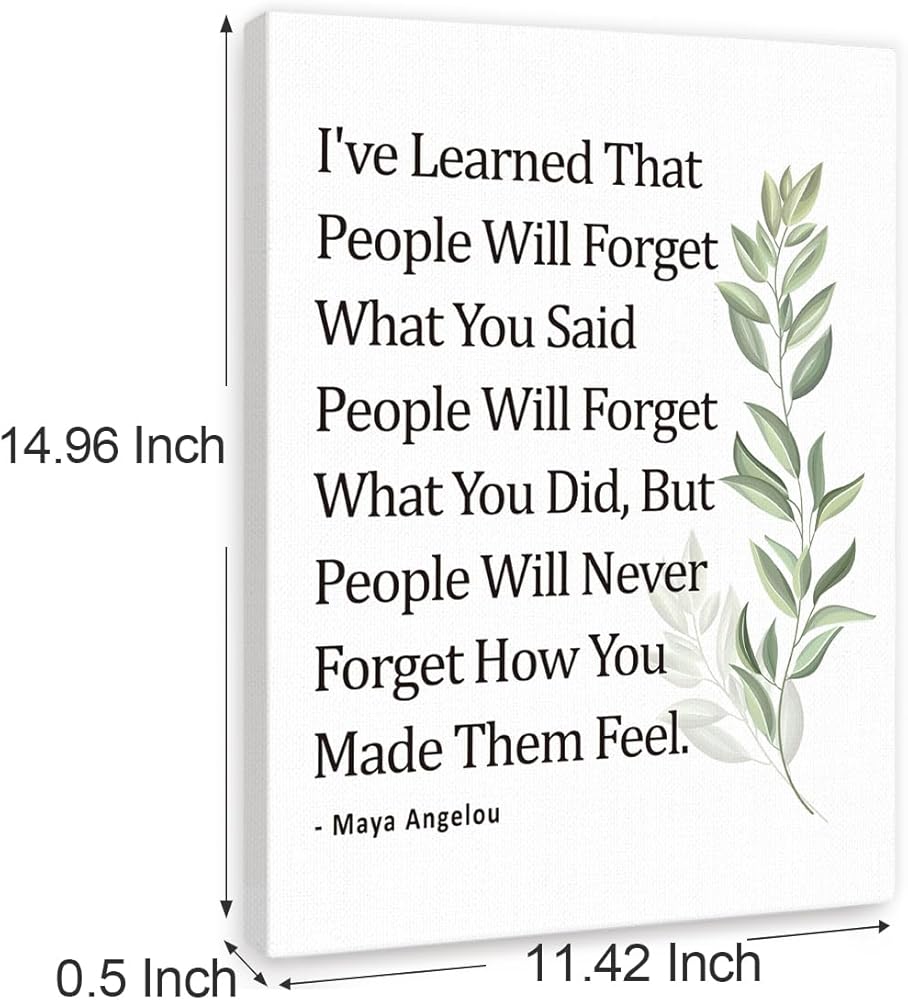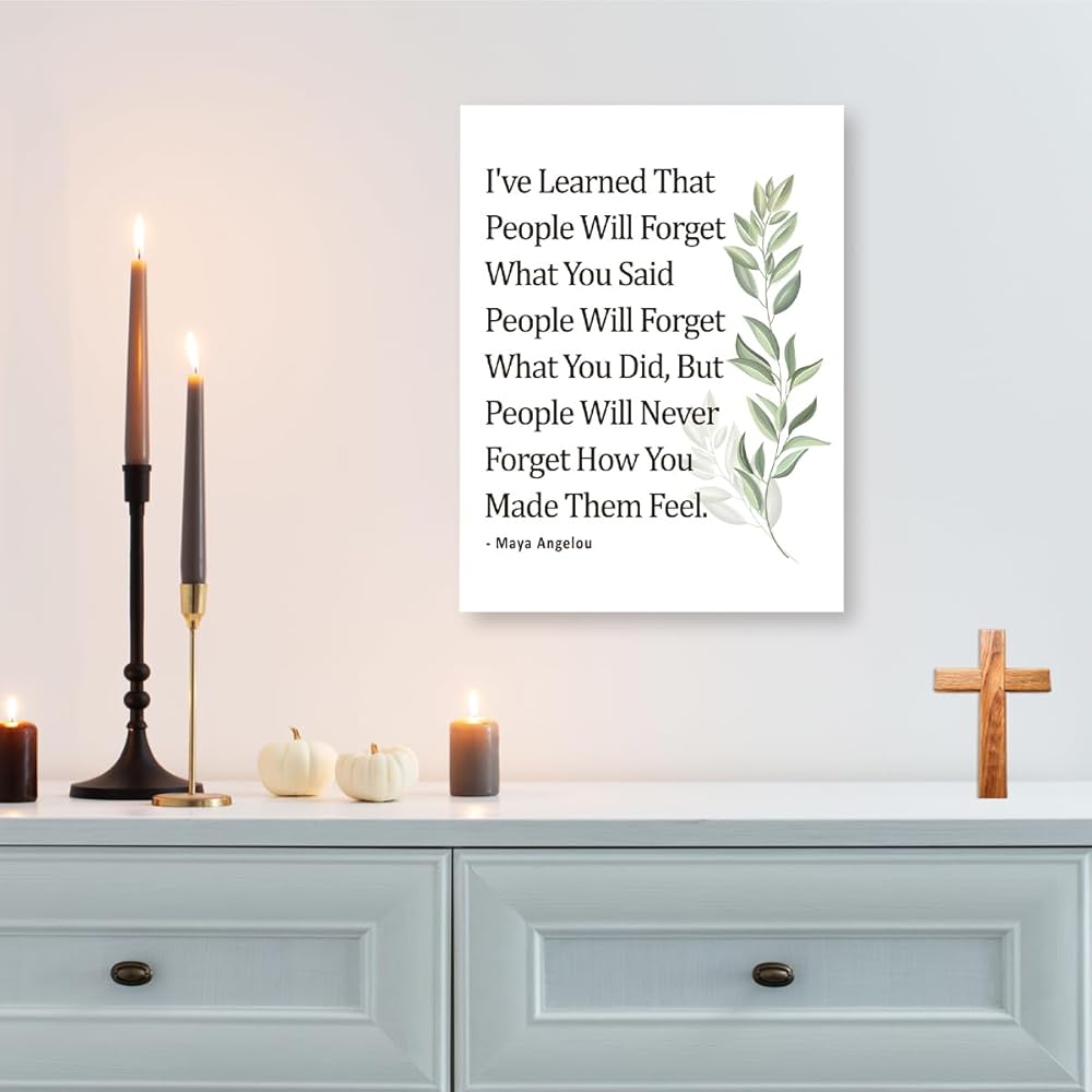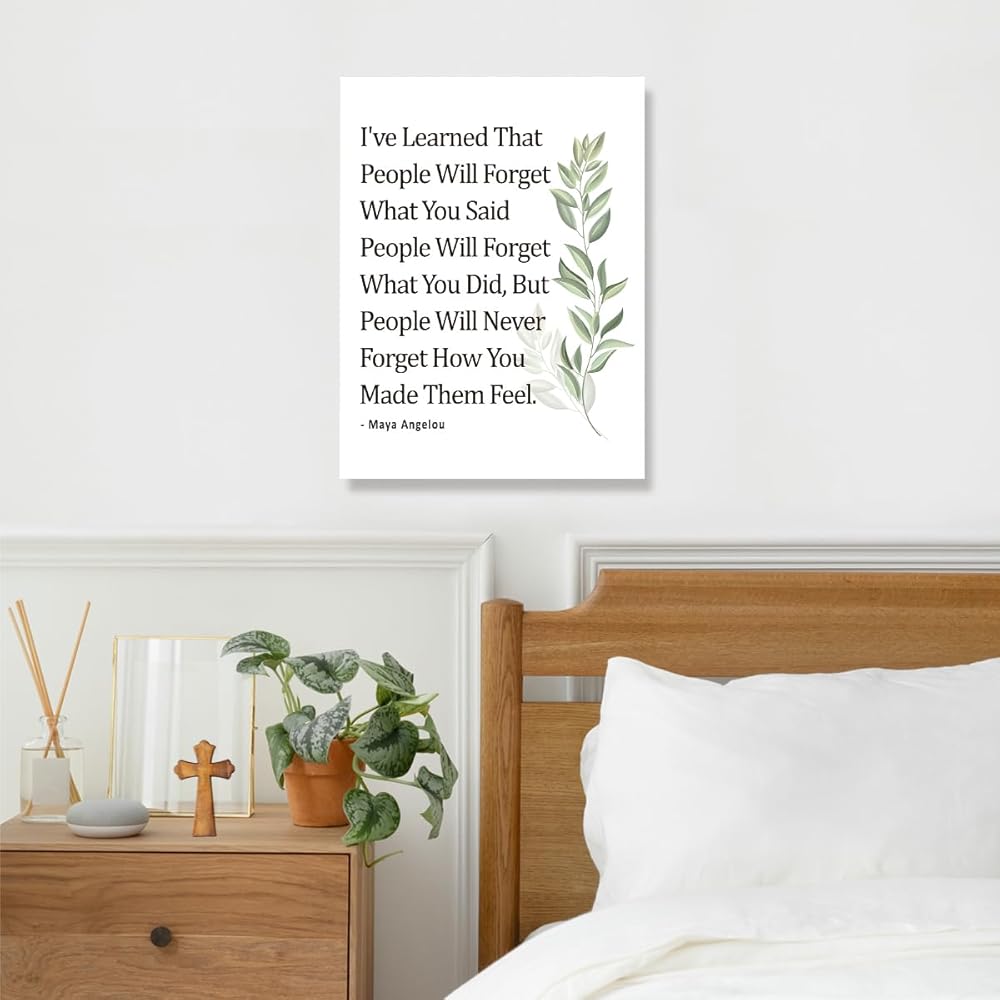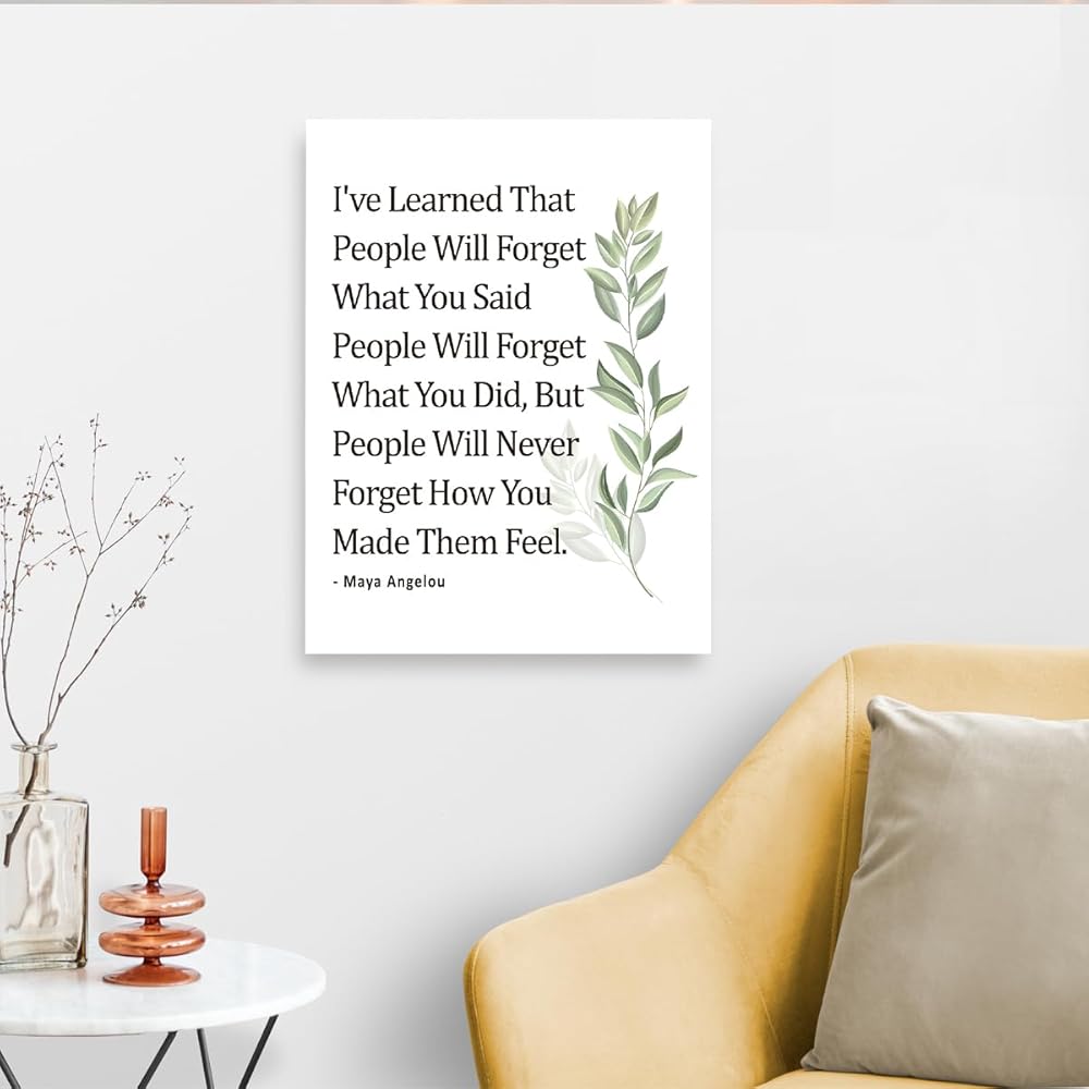 Gwisml Inspirational Quote Canvas Wall Art Motivational I've Learned That People Will Never Forget How You Made Them Feel Quote Canvas Print Positive Painting for Women Home Office Wall Decor