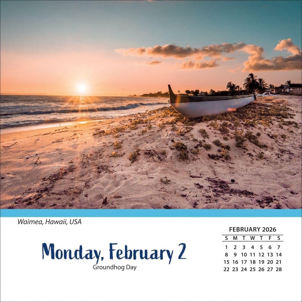 2026 Beaches Daily Box calendar features spectacular beaches throughout the world. Escape to the tropics each day! Turner Boxed Daily Calendars also offer an advantage to those with limited desk space. Turner Photographic Daily Boxed Calendars are plastic-free and recyclable, printed on responsibly sourced FSC paper using soy in