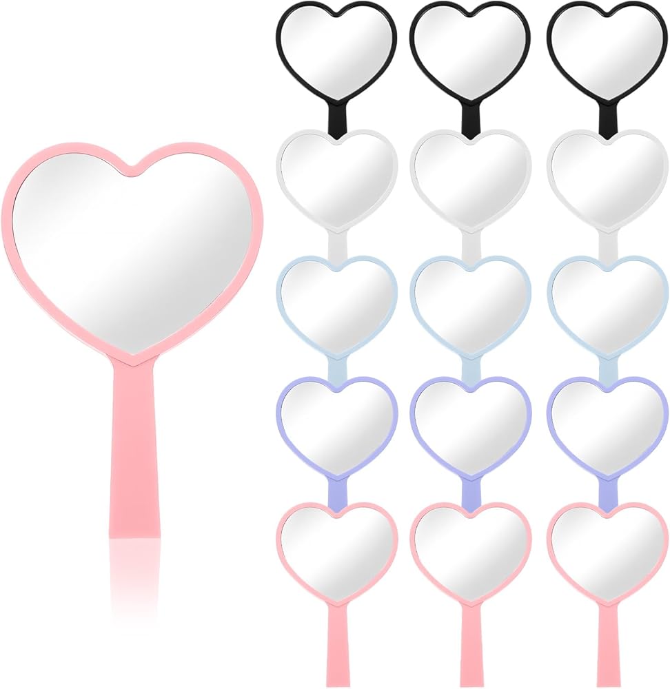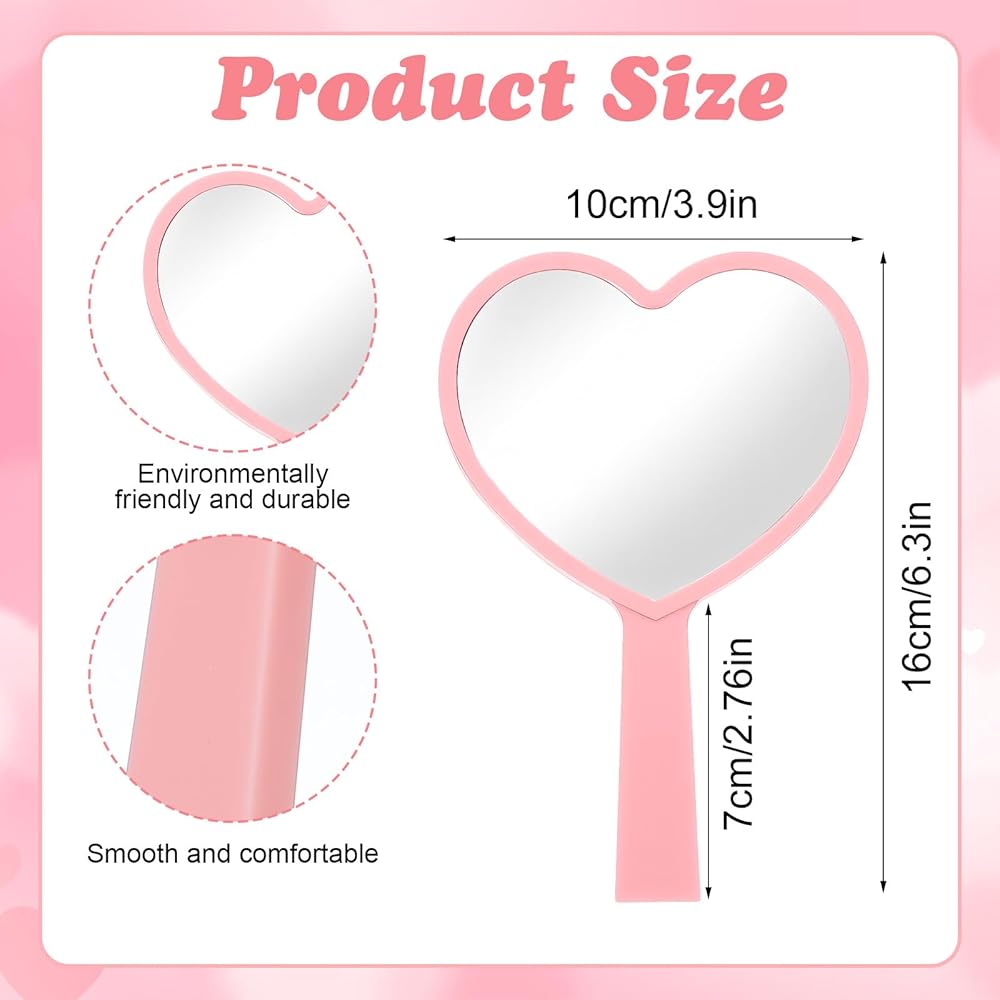 Crafted with quality plastic and glass, these hand mirrors with handle are designed to last. The weightless and smooth nature of the materials offers a decent grip for easy handling. Flaunting a charming heart shaped mirror, it's a practical addition to your daily beauty or skincare routine and being compact in size, it effortlessly fits into a cosmetic bag or women's backpack.