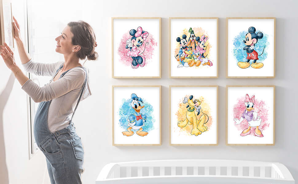 CHILDRENS ROOM WALL ART: Set of 7 UNFRAMED Mickey Mouse and Friends wall decor. Our minimalist designs will make a great addition to your child's bedroom wall.