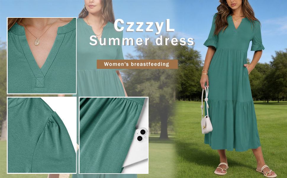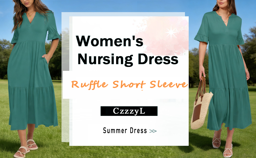 Stylish - This nursing dress is chock full of pretty details including lantern sleeve,A line,flowy tiered hemline.Makes it easy to feel beautiful and confident wherever you breastfeed