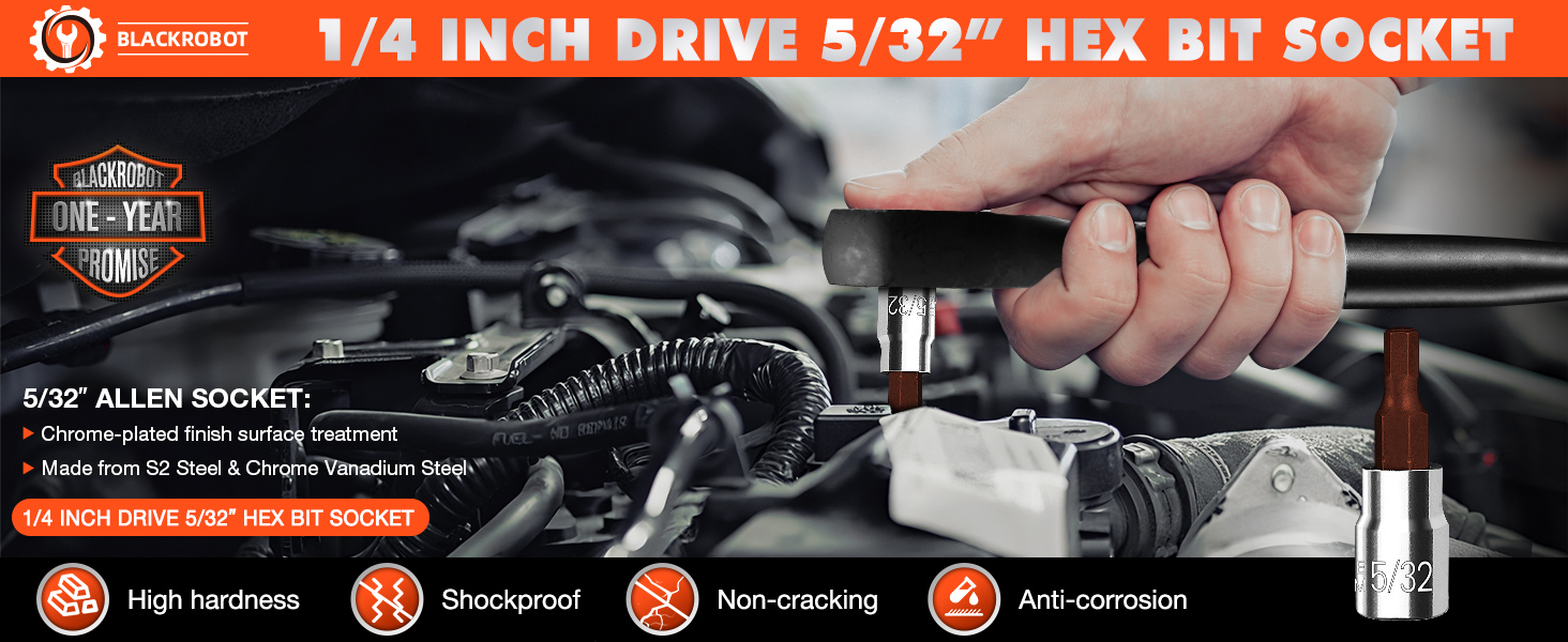 WIDE APPLICATION: The 5/32 inch hex socket itself is designed to be short, so it can be easily removed and installed on motorcycles, off-road vehicles, and car allen head screws.If you encounter any issues while using this bit socket , please feel free to contact us