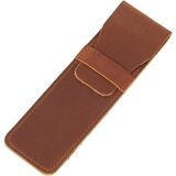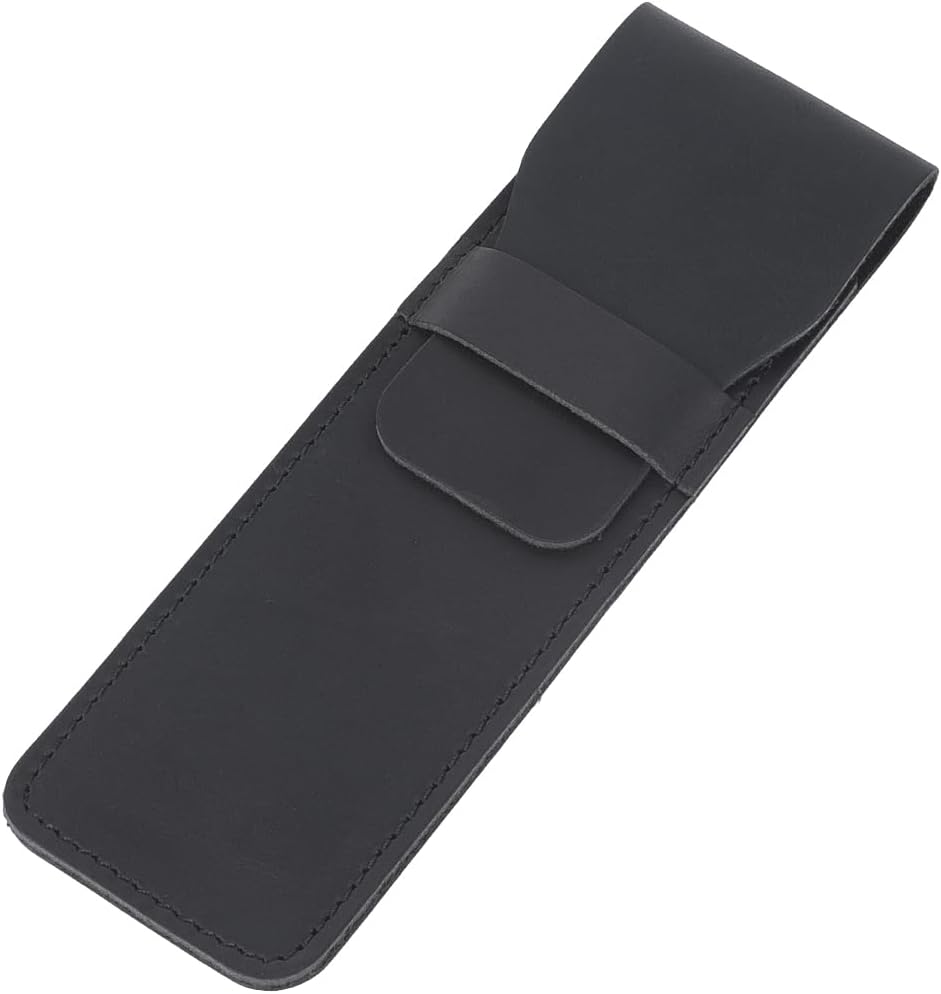 Black Crazy Horse Leather Pencil Pouch Portable Genuine Leather Pen Case Holder Office Handmade Multi Fountain Pen Storage Protective Sleeve Cover Bag with Flap for Travel Accessory
