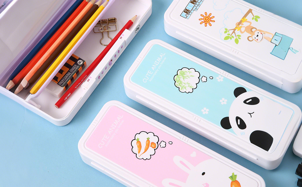 【CUTE PENCIL BOX】Boasts a unique animal-themed pattern for a visual delight. The innovative tiered design creates extra storage space, efficiently organizing pens, rulers, erasers, small clips, and more.