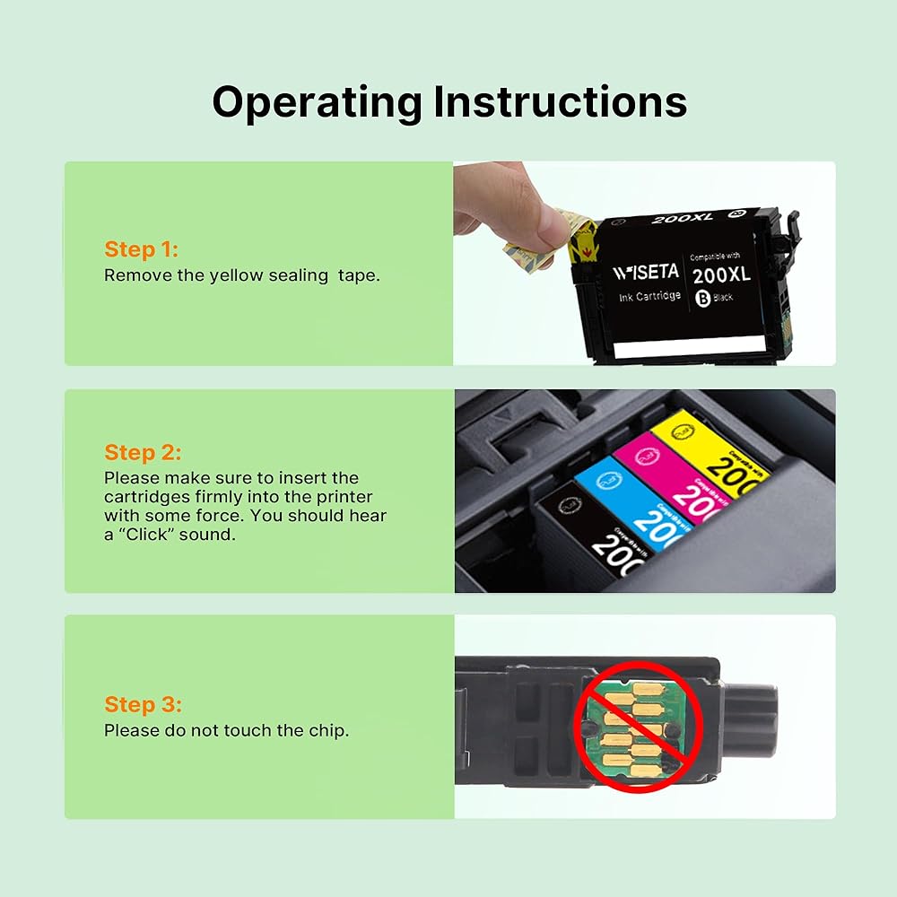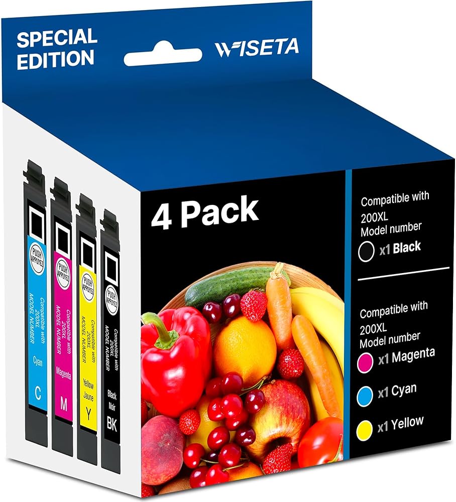 Wiseta Remanufactured 200XL Ink Cartridges Replacement for Epson 200XL Ink Cartridges Combo Pack to Use with XP-200, XP-300, XP-310, XP-400, XP-410 WF-2520, WF-2530, WF-2540 Printer(4 Pack)