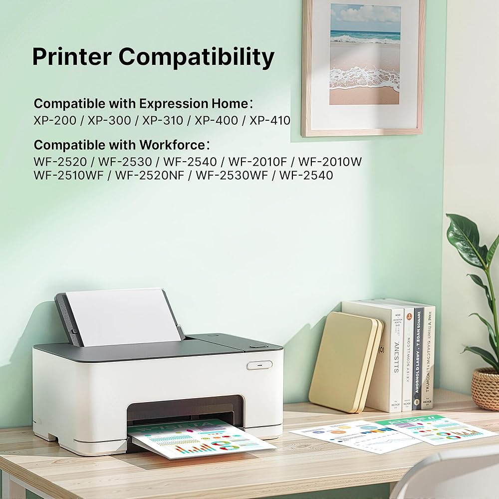 Printer Compatibility: To use with Epson Expression Home XP-200, XP-300, XP-310, XP-400, XP-410, WorkForce WF-2520, WF-2530, WF-2540 Printer