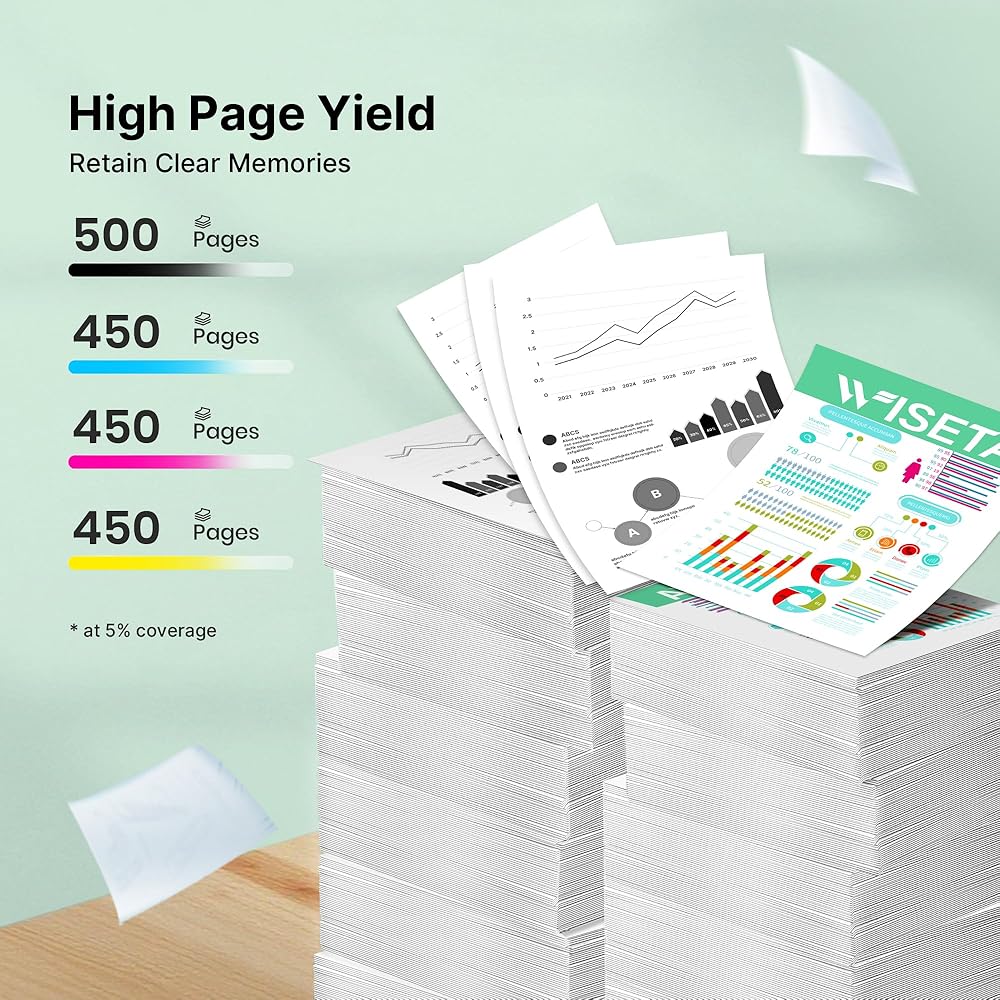 Page Yield: Black 500 pages + Cyan 450 pages + Magenta 450 pages + Yellow 450 pages(at 5% coverage of A4 paper)