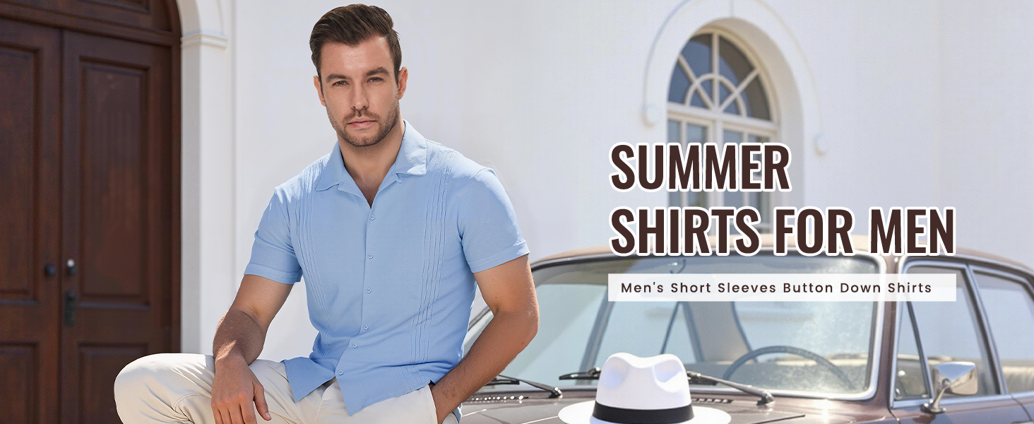 قميص كلاسيكي بأزرار سفلية للرجال - يتميز هذا القميص الكتاني الرجالي الخالد بياقة كوبية وألواح مطوية جانبية أنيقة. يتميز قميص guayabera بمظهر رائع مما يجعله كلاسيكيًا وأنيقًا وهو قميص موضة صيف 2026 العصري
